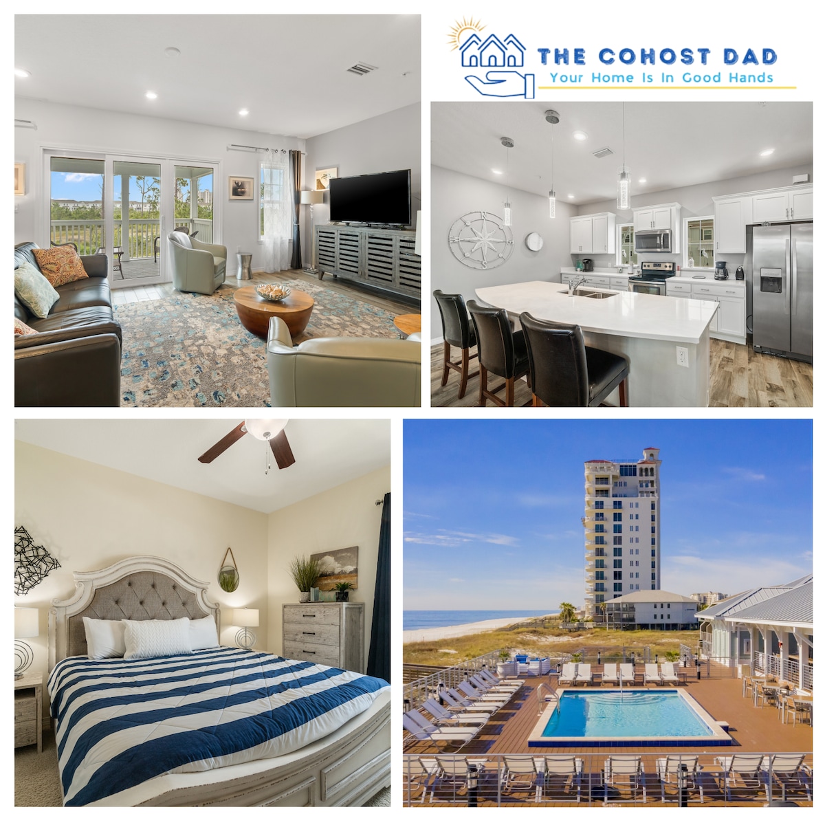 DÍREACH Athchóirithe! Tá teiripe aigéin ag fanacht san árasán compordach seo AR Dheis AR AN trá, radhairc iontacha Ó bhalcóin, leapacha TempurPedic don eispéireas codlata deiridh. Cuirtear gach rud breise a theastaíonn uait chun taitneamh a bhaint as do laethanta saoire sómasacha ar fáil - vaigín trá, snámháin, scáthanna fearthainne agus cathaoireacha trá. Cistin lánfheistithe nua - athchóirithe + seomraí folctha, leapacha nua, linnte snámha & sabhna. Lig do scíth, bain sult as an trá & linn snámha, chomh maith le gníomhaíochtaí áitiúla amhail An Caladh (ní mór iad a fheiceáil!), Gulf State Park, The Hangout, Flora - Bama & Adventure Island!