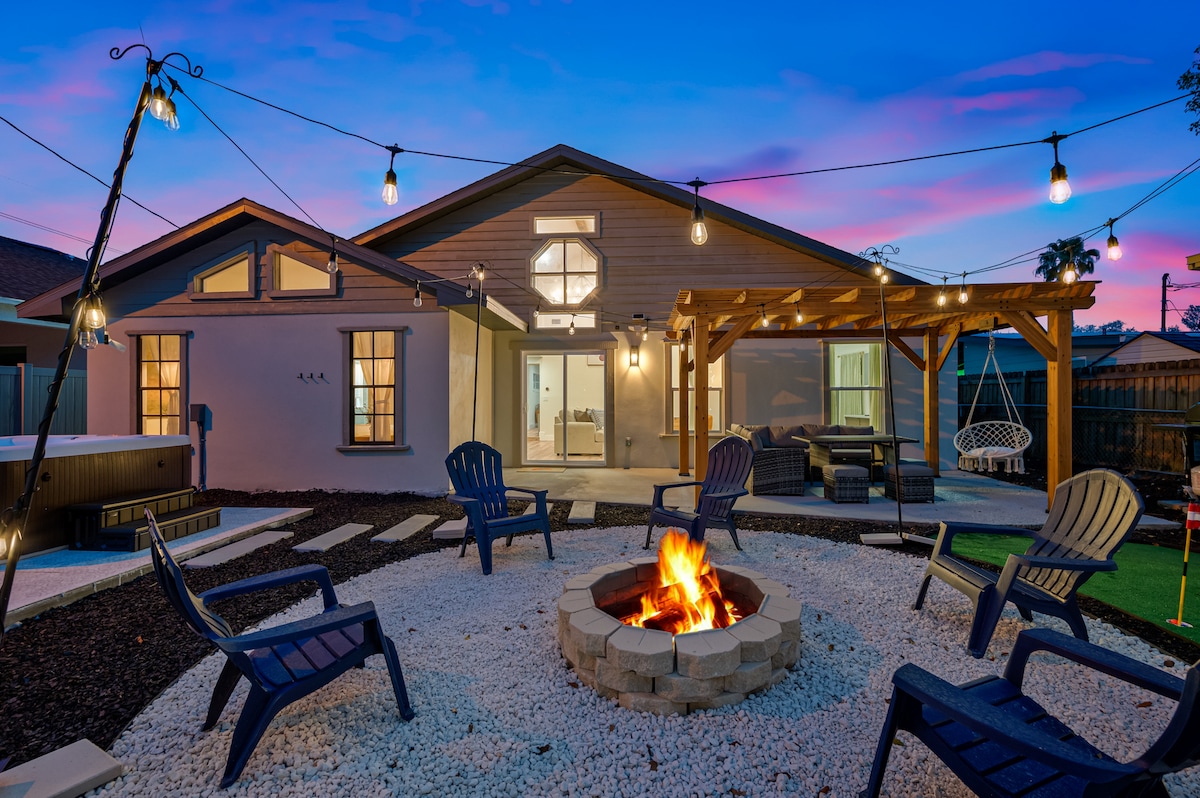 Éalaigh go dtí ár mBaile FAIRSING atá athchóirithe go hálainn, atá suite go lárnach díreach 15 nóiméad ó lár bhaile Saint Pete agus na tránna. Lig do scíth inár bpríomhsheomra leapa a spreag Balinese Mharacó le síleálacha arda agus cócaráil inár gcistin iontach. Bain sult as babhta gailf ar ár gcur glas. Lig do scíth sa TOBÁN TE tar éis lá ag an trá. Neart cluichí spraíúla ar nós Foosball, ceangail 4, foirfe chun bailiú le teaghlaigh agus le cairde. Tar agus fan linn agus taithí a fháil ar an deiridh i do chompord agus só!