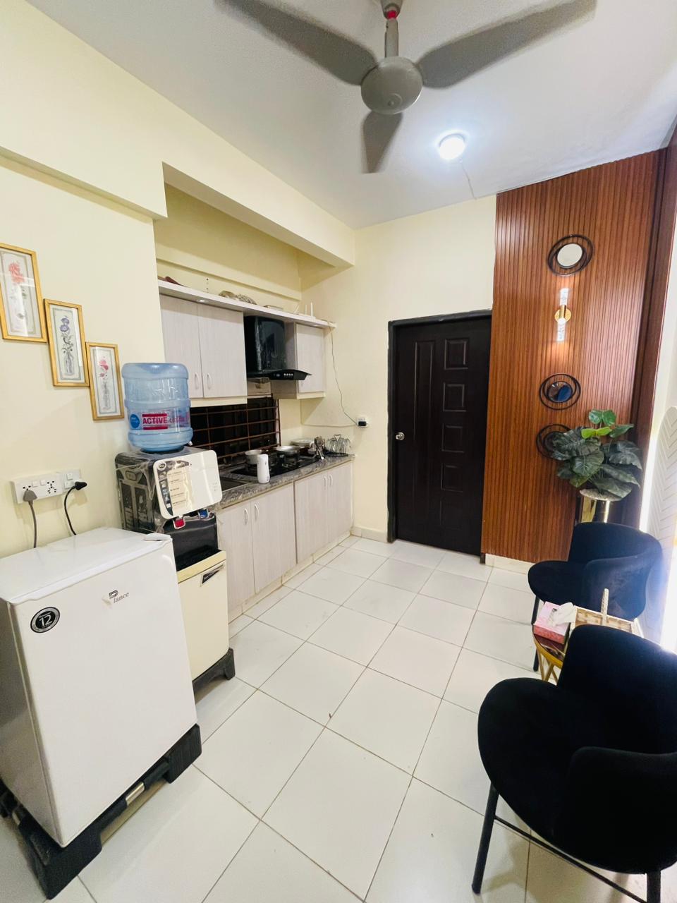 Luxurious Penthouse at the heart of Karachi! Prime Location Near the Airport Minutes from the airport, offering ultimate convenience. Stylish Living Spaces Modern décor, fully equipped kitchen, hot water,AC,and high-speed Wi-Fi. Family-Friendly Amenities Kids’ play area for family fun. 24/7 Security & Free Parking Round-the-clock security and free parking. Exciting Nearby Attractions Close to KFC, McDonald's, and fun attraction