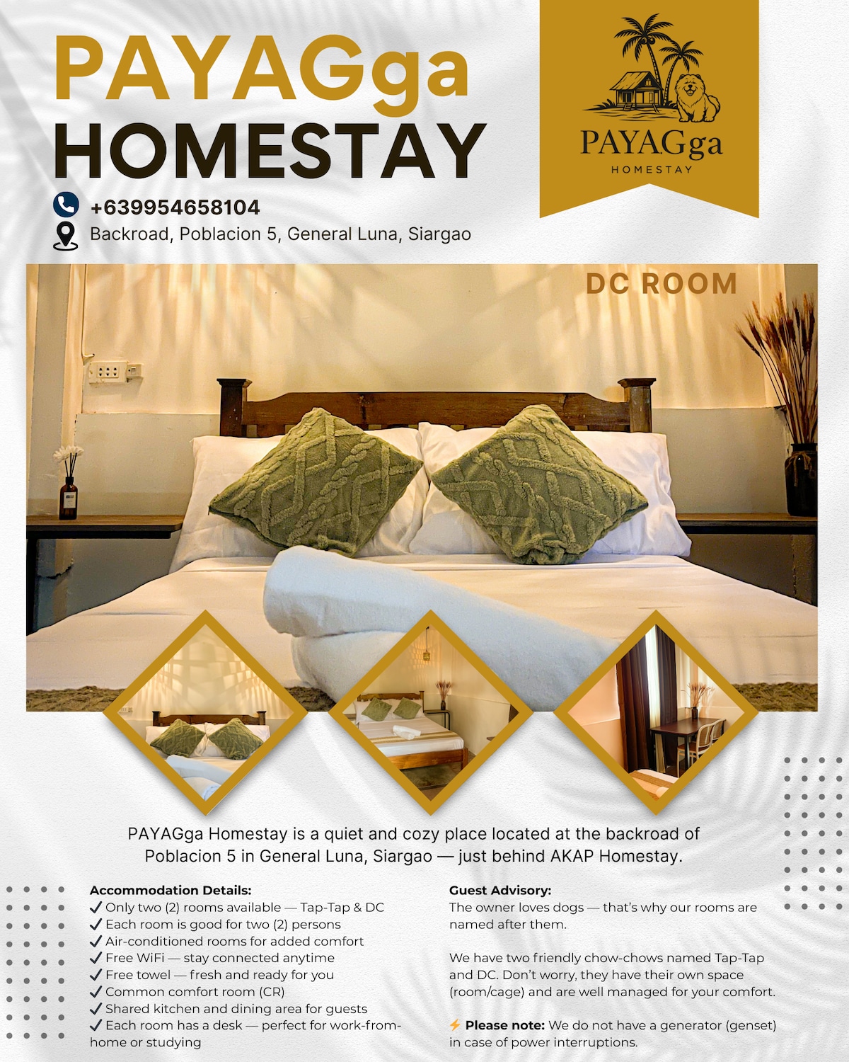 Is féidir le haíonna a scíth a ligean trínár linn snámha fáilteach, béilí blasta a bhlaiseadh, agus iniúchadh a dhéanamh ar an gcultúr bríomhar agus ar an áilleacht nádúrtha iontach a bhfuil clú agus cáil ar Siargao. Cibé acu an bhfuil tú anseo chun surfáil a dhéanamh ar thonnta íocónacha Cloud 9 nó chun dul sa ghrian, is é Meme Villa do bhunáit iontach le haghaidh eachtraíochta. Tá ár bhfoireann thiomanta tiomanta d'fháilteachas eisceachtúil a chur ar fáil, ag cinntiú go mbeidh d'fhanacht dodhearmadta le seirbhís phearsantaithe agus leideanna áitiúla chun d'eispéireas a shaibhriú.