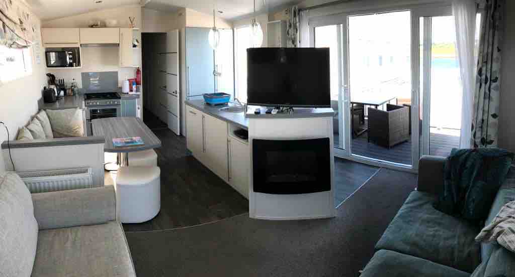 Tá seomra leapa dúbailte, seomra leapa le leaba ar mhéid na banríona (oiriúnach do x1 leanbh/duine fásta óg nó x2 leanaí beaga ag roinnt, seomra cithfholcadáin agus tolglann plean oscailte, áit itheacháin agus cistin. Tá áit lasmuigh in aice leis an sealla le bord agus cathaoireacha agus áit ainmnithe le haghaidh bbq le poll dóiteáin. D'oirfeadh sé do dhaoine atá ag iarraidh imeacht uaidh ar fad, chomh maith leo siúd atá ag lorg saoire bunaithe ar ghníomhaíocht Tá fáilte roimh pheataí (x1 ) £ 20 in aghaidh an fhanachta. Ní fhágfar peataí gan duine ina mbun i sealla
