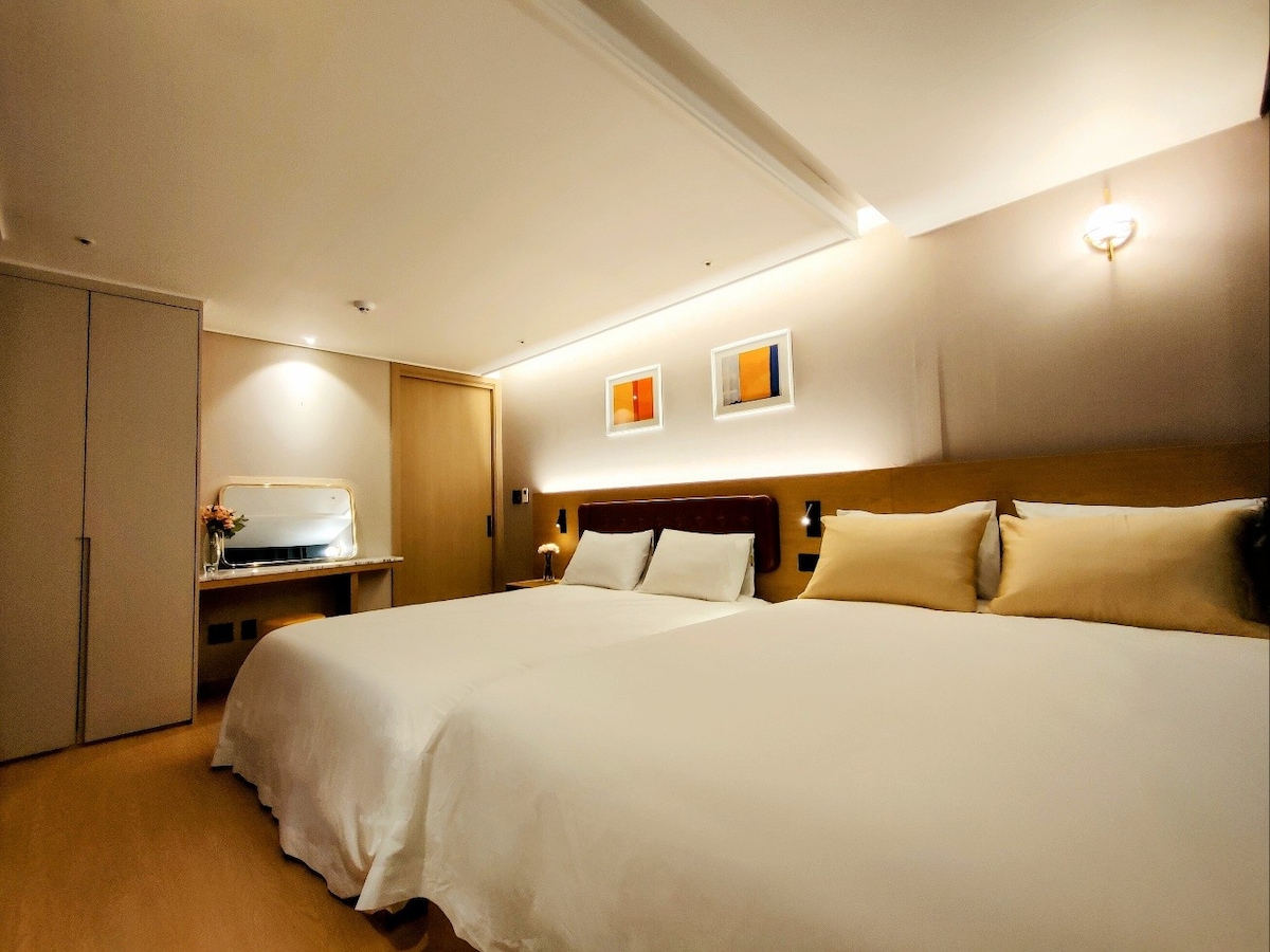 Busan Station 5 nóiméad # Radharc an aigéin # Urlár ard - 51m ²< Suas le 3 dhuine < Leaba 1 > Féinfhreastal + Níochán O/Stóráil bagáiste + Páirceáil saor in aisce