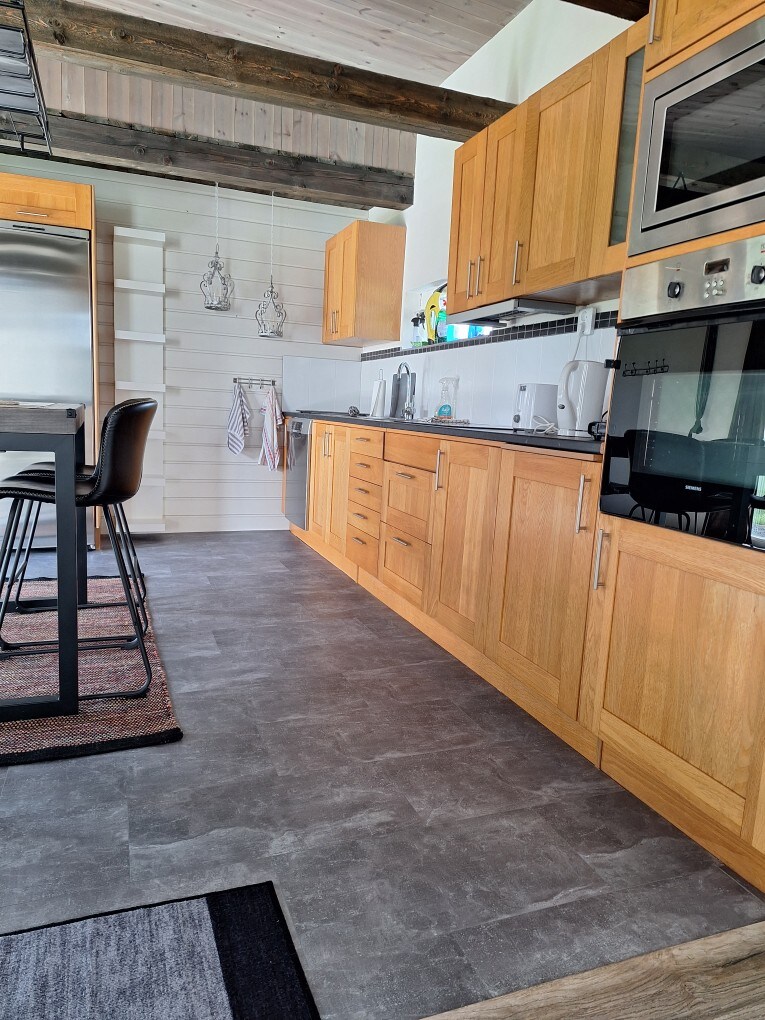 Teach saoire compordach leis an mbeagán breise sin. In aice le limistéar snámha, nádúr álainn, cúrsa gailf, Skövde agus Skara Sommarland. Tá plean urláir an tí oscailte agus fairsing. Tá an chistin nua - aimseartha agus an seomra suí fáilteach suite sa chuid oscailte den teach le hairde síleála as cuimse. Ar an mbunurlár, tá seomra leapa dúbailte (140 cm ar leithead) agus leithreas le cithfholcadán ann freisin. Le céim, is féidir leat dul suas go dtí an lochta codlata cluthar, atá feistithe le dhá leaba 90 cm in aice láimhe. Fáilte.
