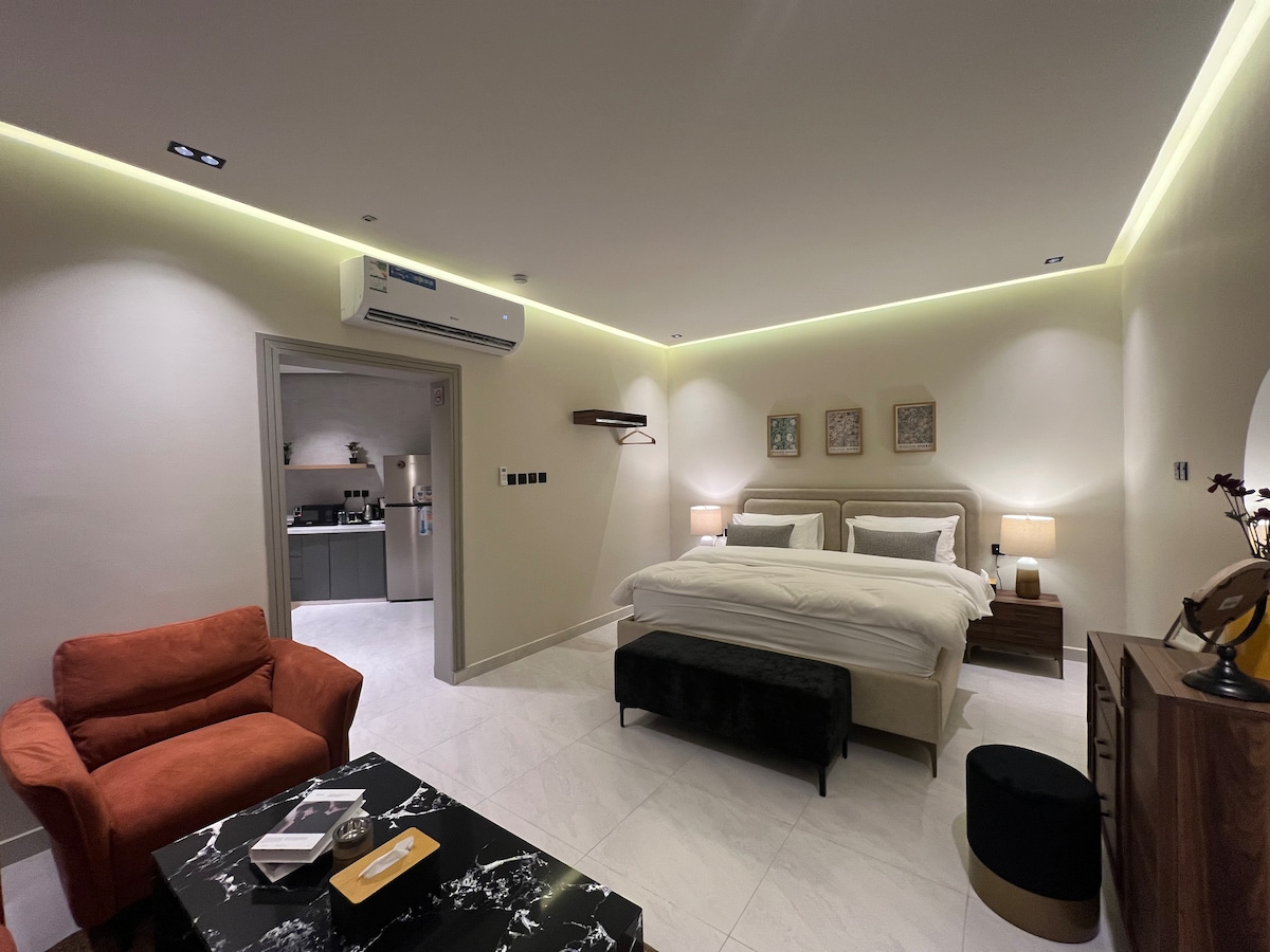 Stiúideo ina bhfuil seomra leapa fairsing atá deartha chun mothú sómasach a thabhairt duit le cianrialtán chun na cuirtíní a oscailt agus a dhúnadh, meaisín caife Nespresso atá maisithe le leathar sómasach a oireann do do bhlas sómasach, agus teilifís chliste le síntiús Netflix saor in aisce duit. Tá an suíomh i gcomharsanacht Al-Fajr, 10 nóiméad ón aerfort agus ón stáisiún traenach (Sar) 15 nóiméad ó (Al-Adham), arb é atá ann ná suíomh turasóireachta atá tréithrithe ag a áilleacht nádúrtha agus ina bhfuil imeachtaí cultúrtha agus siamsaíochta, agus céimeanna ó chosán Pháirc Sababa, agus céimeanna ó Chaifé Jesha, Ghamra, Karz, in aice le nód agus slabhra Shléibhte Aja.Sonraí Clárúcháin: 50036334