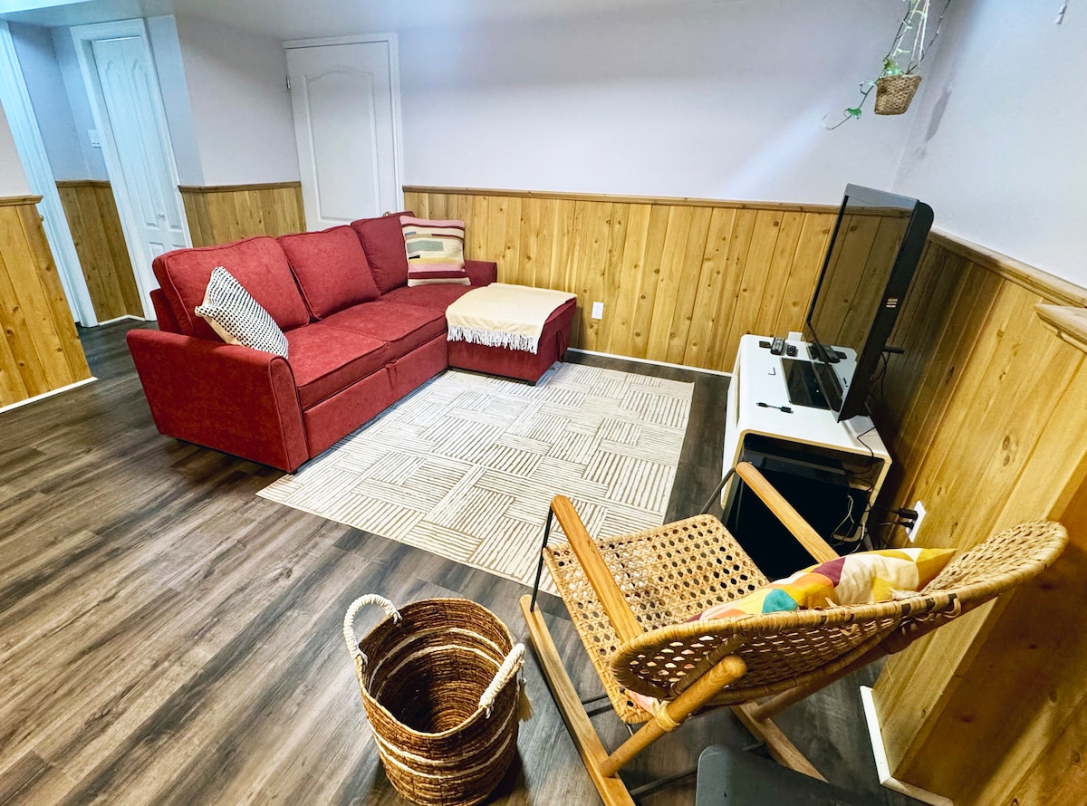 Prime Mount Hope location minutes from the Hamilton Airport & Warplane Heritage Museum. Full one bedroom private apartment in my home on a quiet dead-end street. Full Kitchen with amenities. On ground furnished living room w/sliding doors to outside deck. Cable, WiFi & parking space included. SERTA king bed. 50" smart TV in comfy living room with couch, loveseat and reclining rocker. Perfect for travelers. Pets are welcome upon request.