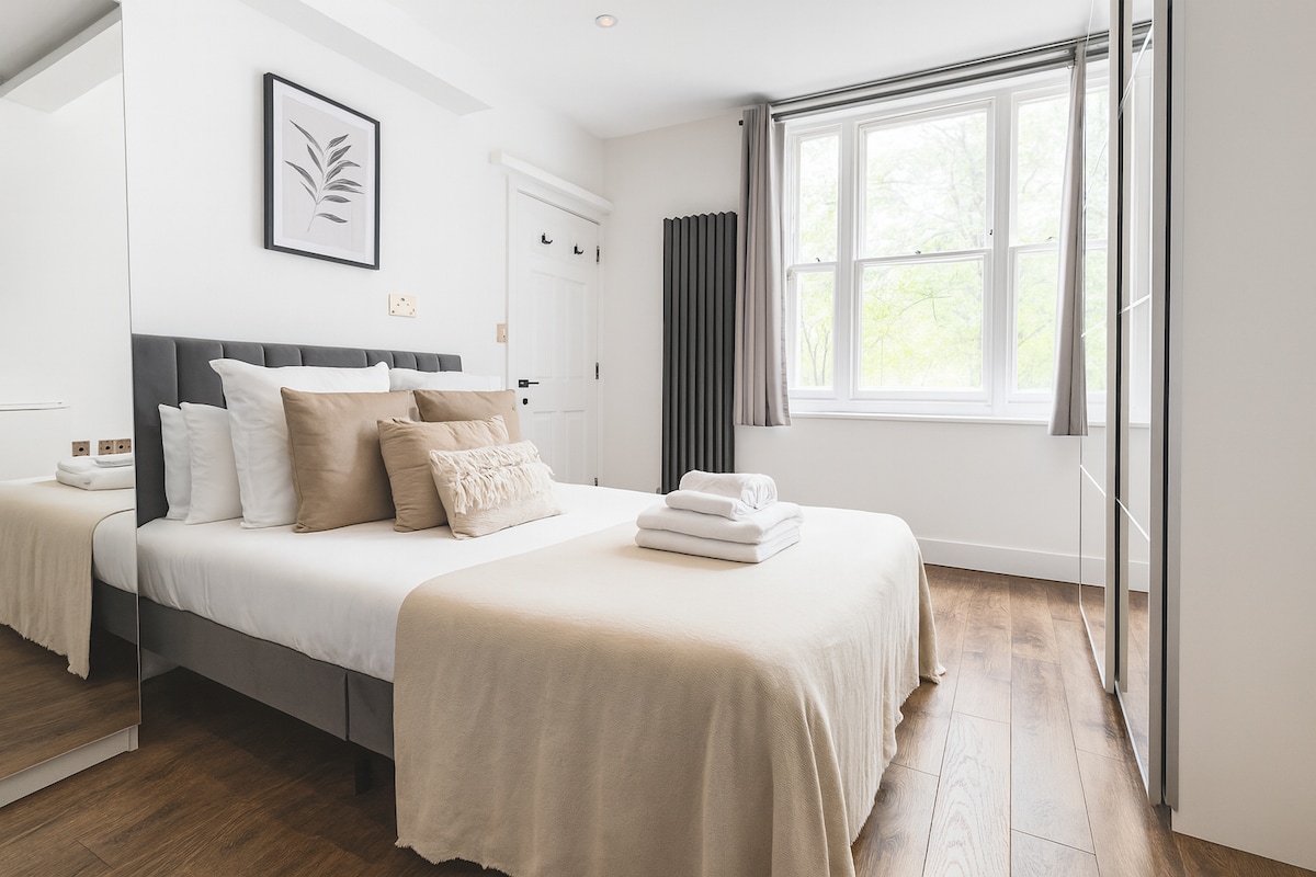 Árasán galánta 1 sheomra leapa in Chelsea ina bhfuil urláir darach, taobh istigh suaimhneach, cistin iomlán, agus rochtain ar ghairdín ciúin comhchoiteann. Níl ach 2 nóiméad ó Bhóthar an Rí agus siúlóid ghearr go Gailearaí Saatchi, músaeim, agus Gairdín Fisiciúil Chelsea. Suaimhneach agus galánta le gloiniú tánaisteach go seomra leapa agus tolglann le haghaidh fanacht síochánta Wi - Fi an - tapa, Teilifís Chliste agus naisc iompair iontacha trí stáisiúin South Kensington & Sloane Square Bain bróga laistigh, le do thoil Bunáit fhoirfe i Londain do lánúineacha nó do thaistealaithe aonair.