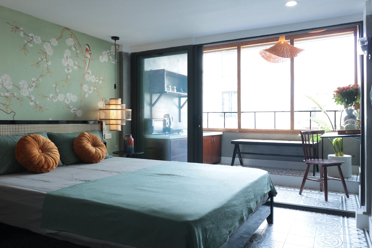 Múscail i Seancheathrú Hanoi! Tá balcóin, fuinneoga móra, agus neart solais nádúrtha ar fáil san árasán tuathúil 2ú hurlár seo. Lig do scíth i dteach fairsing lánfheistithe ina bhfuil cistin, áit itheacháin, seomra folctha agus leaba theolaí. Céimeanna ar shiúl ó Hoan Kiem Lake & caiféanna áitiúla. Go hiontach do thaistealaithe atá ag lorg compoird agus atmaisféar barántúil araon.