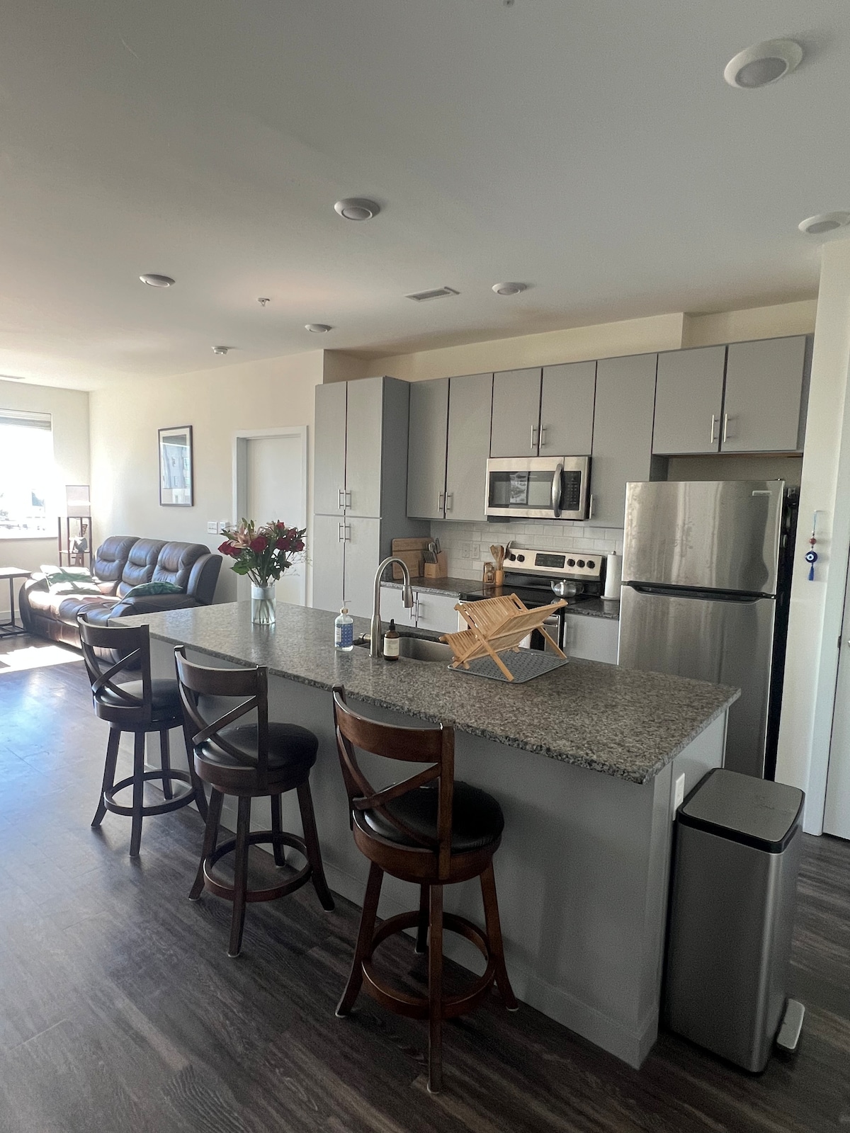 Árasán fairsing suaimhneach seomra leapa amháin gar do gach rud in Richmond! Le síleálacha 10 gcos agus plean urláir oscailte tá an t - árasán céad urláir seo compordach agus fairsing. Tá sé suite ar an gcéad urlár de dhéphléacs le cúlchlós scáfar agus deic ilchodach. Tá gach rud athchóirithe as an nua lena n - áirítear cistin iomlán, seomra folctha ina bhfuil cithfholcadán álainn agus córas lárnach AC agus téimh. Is breá linn do chairde clúmhacha a óstáil chomh maith, agus tá an cúlchlós foirfe do mhadraí le bheith ag rith timpeall.