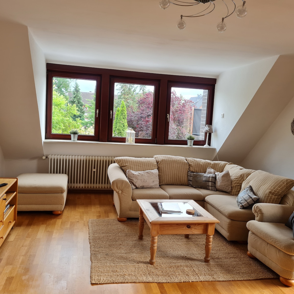 Tá árasán fairsing éadrom ina bhfuil trealamh an - iomlán ag fanacht leat! Cruthaíonn ballaí bána agus an t - urlár parquet geal atmaisféar taitneamhach don oifig bhaile agus do laethanta saoire araon. Beckons an ardán mór dín leis an tolglann - Cúinne agus na tolgairí gréine. An - chiúin, ach i gceann 1 nóiméad ar an bpríomhbhóthar i dtreo Hannover, Messe nó i gceann 30 nóiméad ag an aerfort. Is féidir teacht ar lár stairiúil cathrach Celle i gceann cúpla nóiméad ar iompar poiblí.