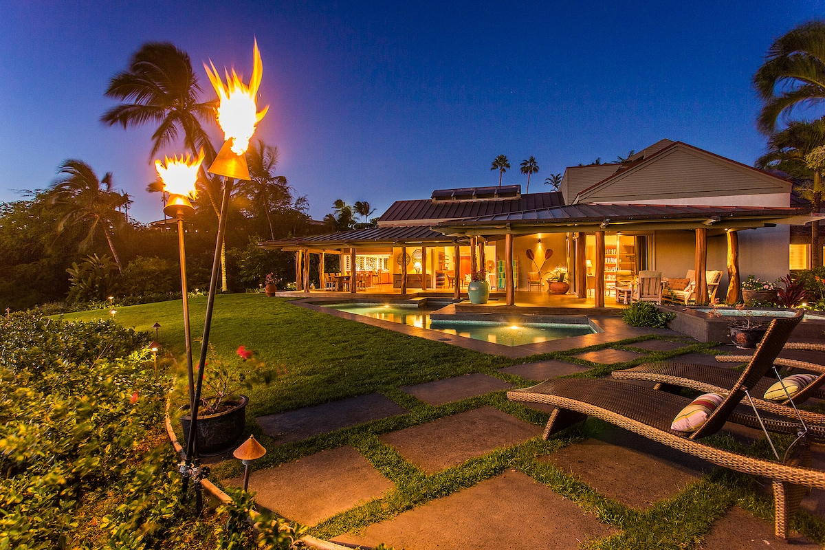 Decorated with mature palms and lush greenery, Na Hale 1 celebrates modern Hawaiian living at its finest. Enjoy beautiful sunsets over the ocean from your backyard, or from your private beach club. Na Hale 1 has a close proximity to the 5-star private Pauoa beach and club - just a few minutes walk, or 2-minute golf cart (included) ride away. Spacious great room/kitchen combination with 3 bedroom suite pods surrounding a generously sized pool and hot tub, each of which is a bedroom/bath suite.