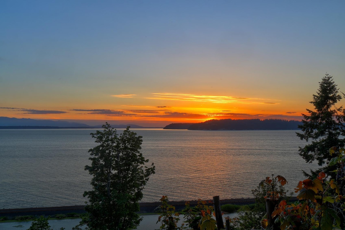 You will love the amazing sweeping 180 degree view of Sound, Olympics, and the breathtaking sunsets all from your Airbnb private deck! Imagine seeing orcas, seals, & bald eagles from your Airbnb oasis. This fantastic Airbnb is located on a quiet street in a private setting at Edmonds, and with walking distance to Picnic Point Park, and also is 24 miles from Seattle Downtown. Enjoy sounds of the nature when stay in this unique place.