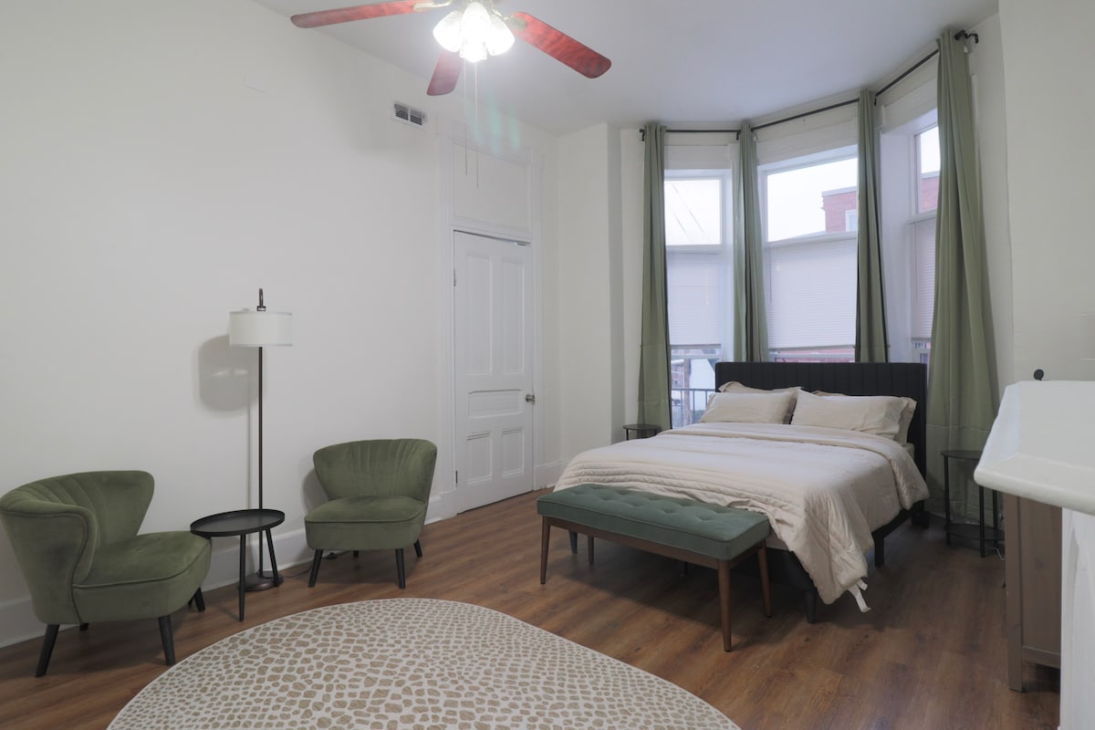 Fáilte chuig do thearmann cruthaitheach aon seomra leapa, aon seomra folctha in Reservoir Hill, atá deartha le haghaidh saoirí gairid shuaimhneacha, saoirí sa bhaile nó turais oibre. Meascann an spás seo atá lán le healaíon draíocht stairiúil le compord nua-aimseartha agus tá go leor stáisiúin oibre ina seasamh agus ina suí ann. Bain sult as seomra leapa feidhmiúil ina bhfuil leaba Murphy chun spás breise a chur ar fáil, cistin lán-stocáilte, áit itheacháin fhoirmiúil, cart barra ar a bhfuil seinnteoir vinile, radhairc ón mbalcóin, agus sonraí tuisceanacha ar fud an áite, foirfe don scíth, don chruthaitheacht, agus do chuimhní cinn atá fiú a ghrianghrafú.