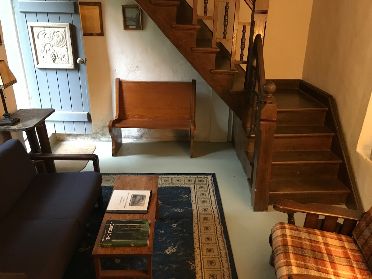 Tógtha de chloch atá cairéalaithe go háitiúil ag na Durwards in 1876, sa lá atá inniu ann tá sé fós dílis dá stíl ailtireachta. Suas staighre adhmaid atá suite go géar sna 1800idí, tá dhá leaba chúplacha ina gcodladh ar an dara hurlár. Tá radhairc uathúla ó go leor fuinneoga bunaidh. Cuimsíonn d'fhanacht ag The Hermitage leictreachas, micreathonnán, agus mionchuisneoir, ach gan aon uisce reatha. Tá seomraí scíthe agus cithfholcadán suite sa phríomhfhoirgneamh ag ceann an - Thoir den phríomh - halla, ach siúlóid ghearr síos an cnoc.