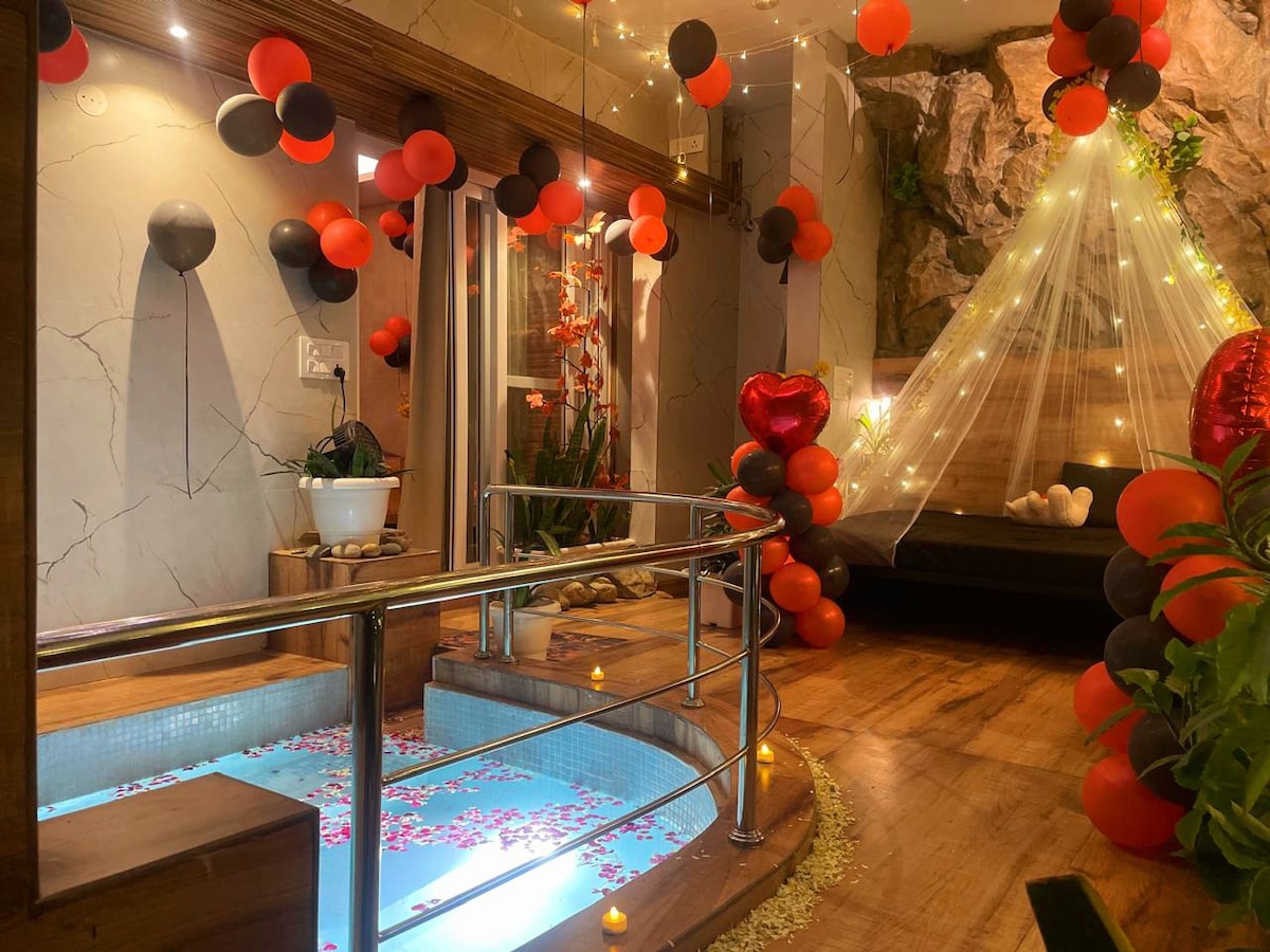 Áit shómasach ina bhfuil linn snámha mhór (10 dtroithe ar fhad agus 4 troithe ar doimhneacht) faoi dhíon agus áiteanna maireachtála atá maisithe go galánta. Máistirsheomra leapa mór le Jacuzzi príobháideach sa seomra folctha ar an láthair. Tá sé suite i Posh South Delhi Neighborhood. In aice le nithe móra is díol spéise do thurasóirí amhail Lotus Temple, Qutub Minar, Hauz Khas. Moil Siopadóireachta cosúil le, Roghnaigh Meall na Cathrach, GK, Shahpur jat. 5 nóiméad ón Stáisiún Meitreo insta - micassohomes 30 -40 nóiméad ón Aerfort ag Uber, inrochtana ag Metro freisin.