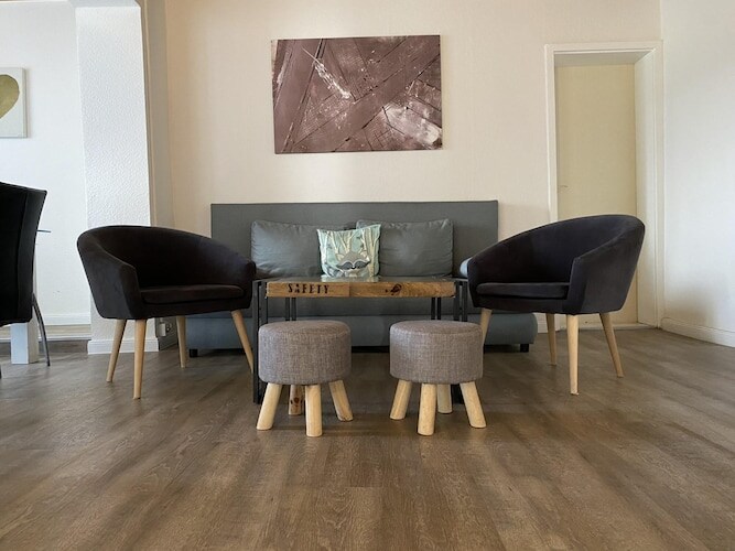 Cuireann ár dteach saoire KONVENT 15 gach rud ar fáil duit a d'fhéadfá a shamhlú le haghaidh fanacht saoire dodhearmadta i gCathair Oidhreachta Domhanda UNESCO de Quedlinburg. Tá 2 sheomra leapa ar leith sa teach, gach ceann acu le leaba rí - mhéid agus 2 chathaoir uilleacha sa seomra mór ina bhfuil cistin a thiontaíonn go leapacha aonair lánmhéide (100x200). Tá 1 leaba taistil do naíonáin agus 1 leaba taistil do leanaí ar fáil chomh maith. Is féidir leat cuairt a thabhairt freisin ar ár Láithreán Gréasáin KONVENT15 le haghaidh tuilleadh eolais.