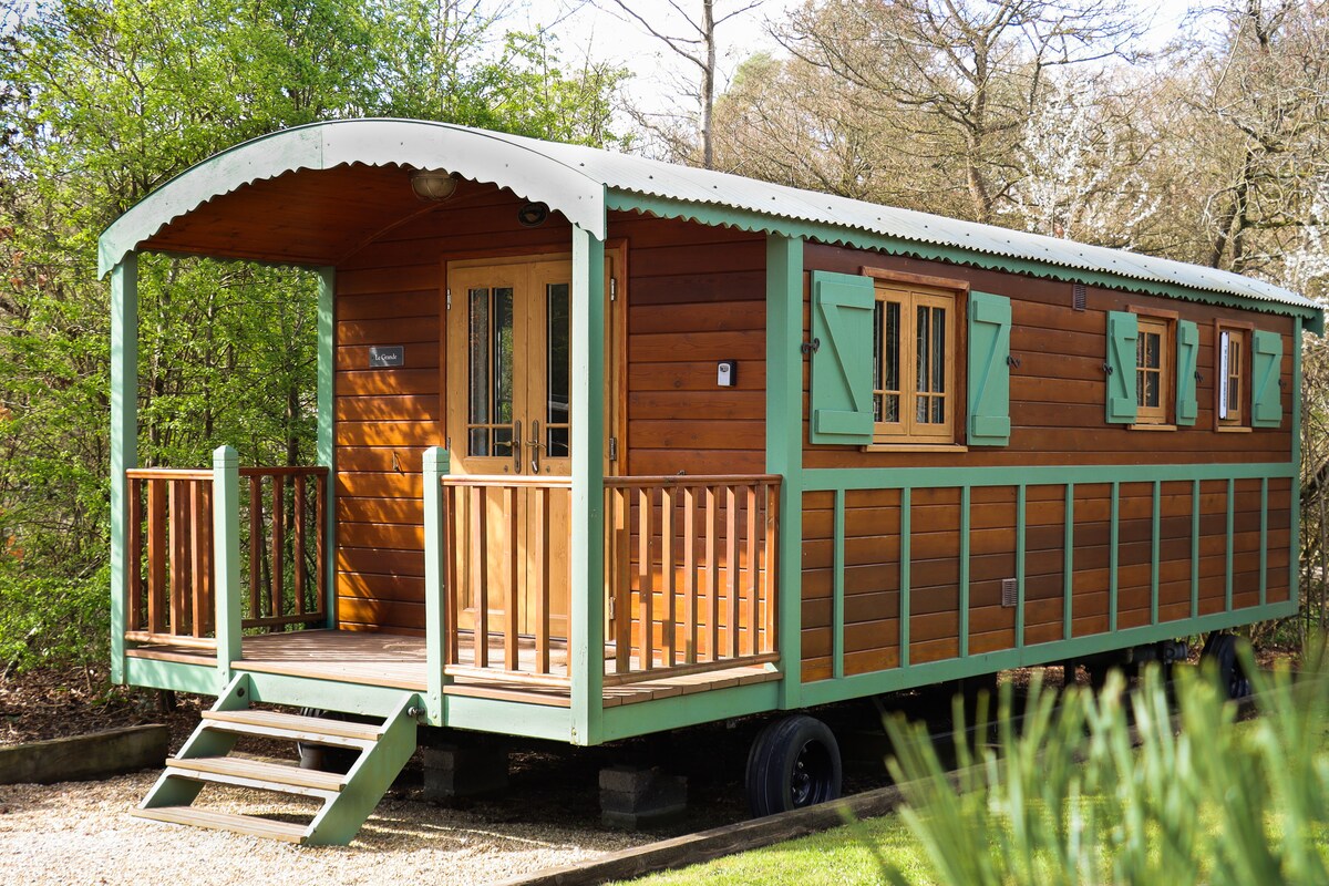 Bohemian agus lán de charachtar, ní chuireann Le Grande Roulotte isteach ar chompord. Seomra folctha teaghlaigh ina bhfuil cithfholcadán, doirteal agus leithreas. Cistinéad le iarta ionduchtaithe, cuisneoir agus micreathonnán. Leaba dhúbailte lánmhéide agus dhá leaba lae shingil. Áit lasmuigh. Tá gach éadaí leapa agus tuáillí san áireamh i gcostas d'fhanachta.