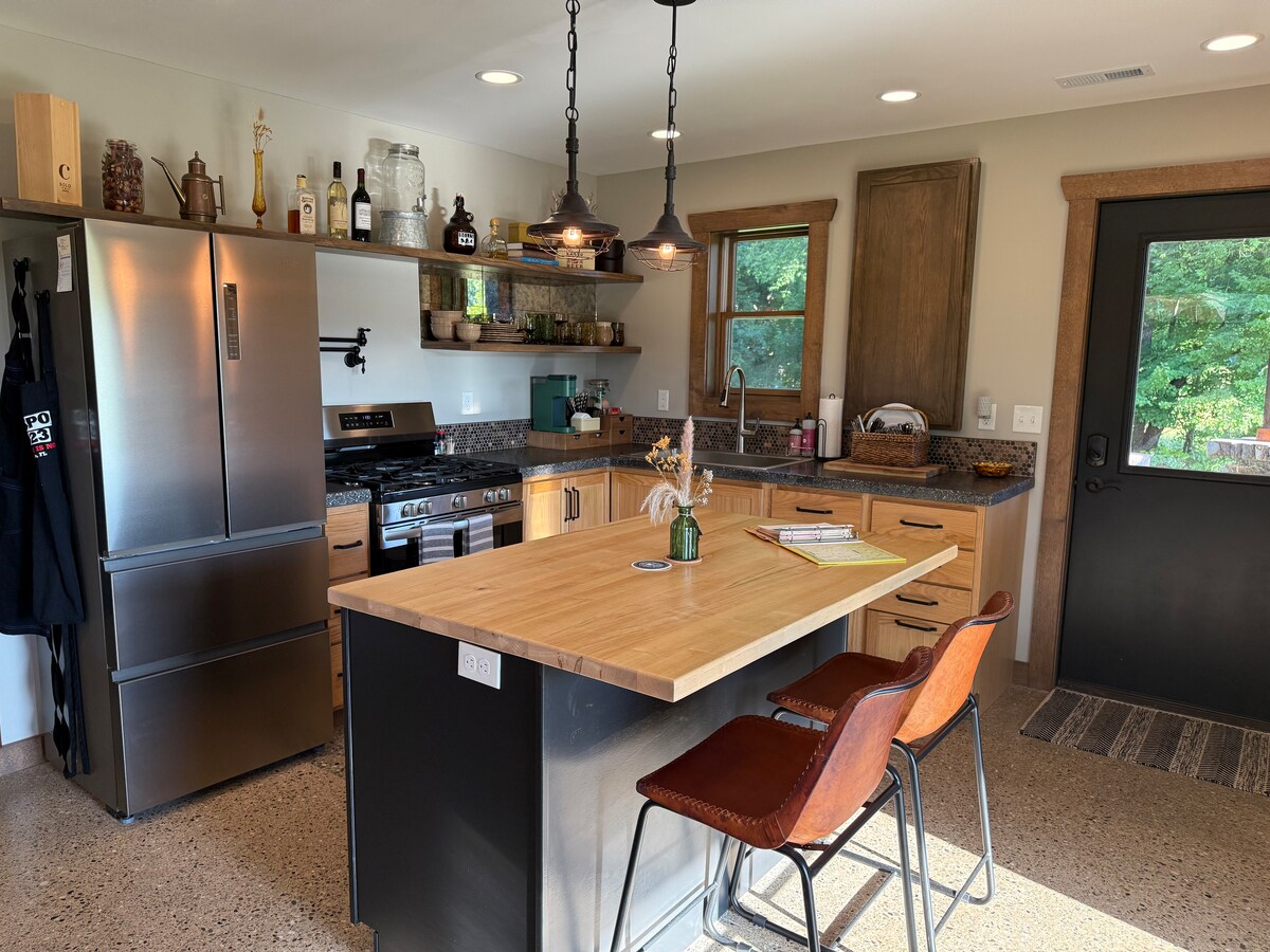 Bain sult as an charm síochánta & ambiance de B&B seanré athchóirithe! Foirfe do shaoire ghearr rómánsúil, do thearmann pearsanta nó do thuras teaghlaigh, tá sé príobháideach, ciúin, tá radhairc de 200 acra de choillte áille ann agus tá sé maisithe go hálainn le seanré compordach agus troscán i stíl teachín. I measc na saoráidí tá Ciseán Fáilte fíona, earraí bricfeasta blasta, caife Starbucks, éadaí leapa sómasacha, cainéil teilifíse den scoth & cainteoir BOSE! 5 nóiméad ó I -69, tar ag fanacht agus féach cén fáth a dtugann aíonna “baile as baile” teolaí gleoite ar The Cottage!