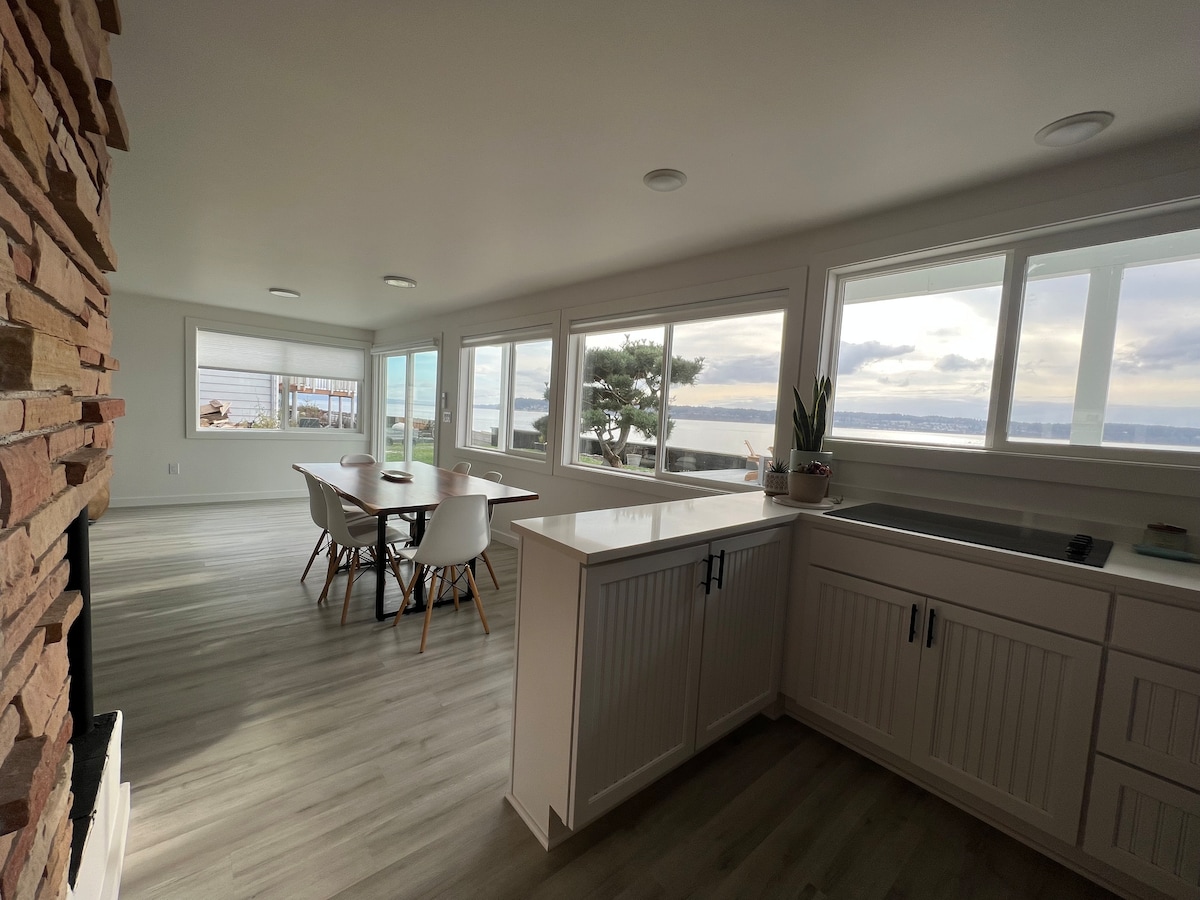 Samhlaigh go bhfuil tú ag dúiseacht chun féachaint ar éirí álainn an Aigéin Chiúin Thiar Thuaidh ón teachín gleoite seo cois uisce! Tá an teach seo ar fad faoi dhraíocht seanré cois farraige! Ag taoide ard, mothaíonn tú go bhfuil tú ag snámh agus ag taoide íseal tá míle de thrá ghainmheach bhog agat chun iniúchadh a dhéanamh idir do bharraicíní. Radharcanna iontacha 180 céim de Langley Cove, Oileán Camano, Áirithint Tulalip, Hat Island, Cathair Everett, Cathair Mukilteo agus Sléibhte na Cascáide.
