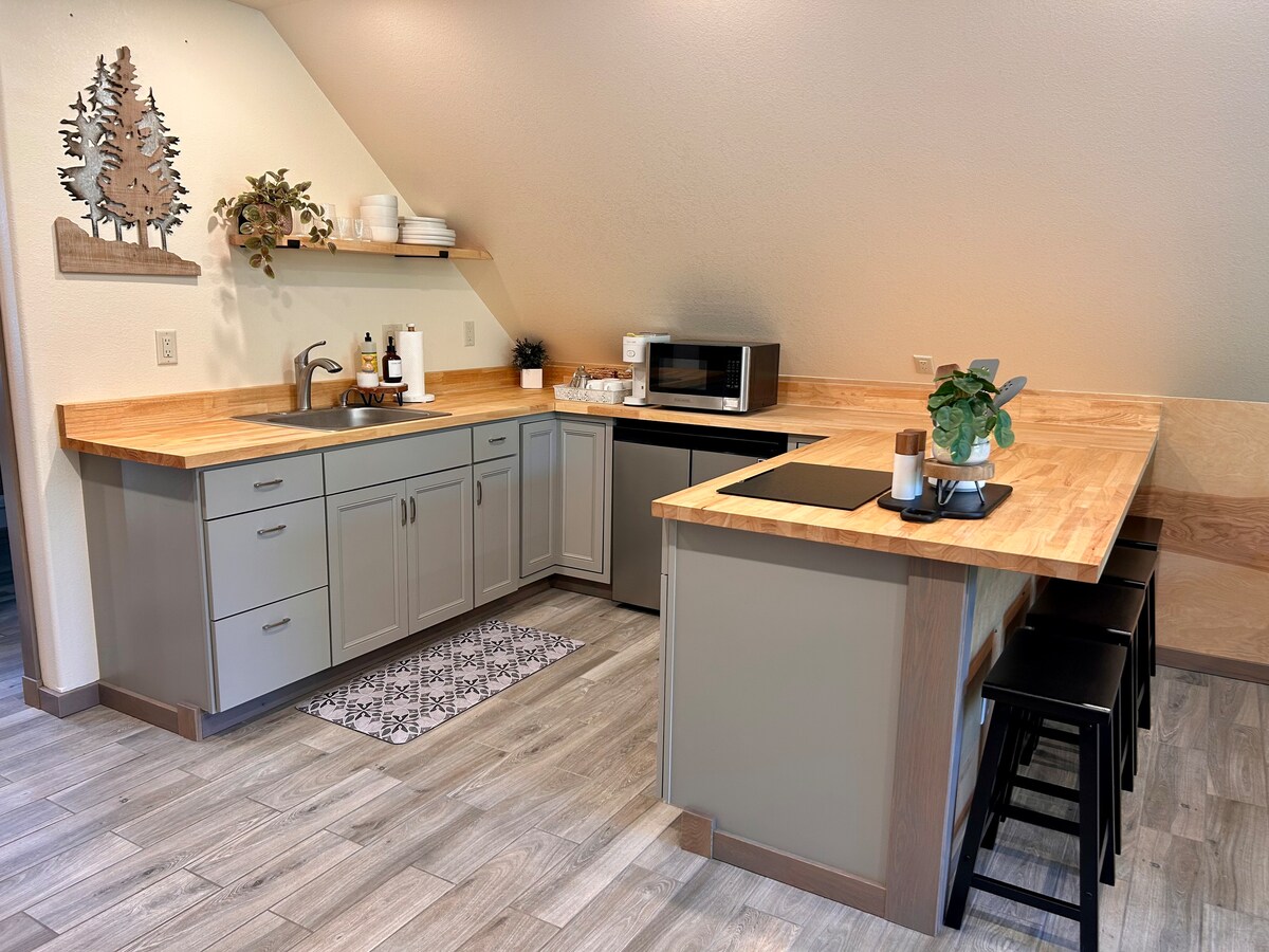Svuít d'aíonna lár an chéid a athchóiríodh le déanaí i gcroílár Helena. Tá iontráil nialasach céime, leaba de mhéid banríona, spás vardrús, éadaí leapa ardchaighdeáin, micreathonnán, mionchuisneoir, pota caife, AC, agus solas nádúrtha ar fud na svuíte. Is féidir tolg compordach leathan le héadaí leapa a úsáid sa seomra suí le haghaidh leaba bhreise. Cithfholcadán úrnua agus an t - urlár curtha in ionad i ngach seomra. Rochtain éasca ar I -15, tiomáint thapa go lár Helena atá lán de mhicreaghrúdlanna, bialanna agus siopadóireacht, agus gar don Capitol.