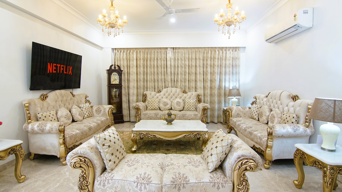 This accommodation, Palm 34, is located in Civil Lines, the most premium location in Jaipur. It is a lavish modern bungalow wrapped around with a lush green lawn. The listing has 4 spacious rooms on the second floor to accommodate 14 guests with extra beds. Additionally, it has a luxurious living area, an aesthetic dining area, and a private kitchen. The guests are free to relax and rejuvenate on the beautifully designed terrace. A private cook can be arranged for an additional charge