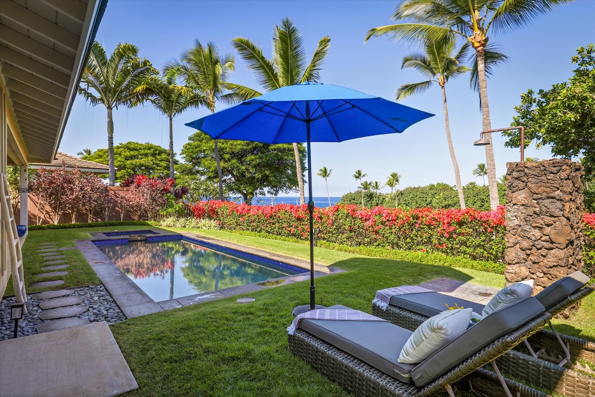 3 sheomra leapa/2.5 seomra folctha, Codlaíonn 8 le Linn Snámha Gréine Príobháideach Téite le Eas, Lanai, Gazebo le Ocean View, Clós Trópaiceach. 5 nóiméad go lár bhaile Kona ar feadh an uisce. Tá an "teach samplach" seo suite i bpobal geataithe de chuid Kahakai ina bhfuil radhairc iontacha. Tá sé gach uasghrádú ar fud an tí le haghaidh só deiridh. Téann cosán ar an réadmhaoin 1/2 acra móide chuig gazebo príobháideach ardaithe don dinnéar iontach rómánsúil sin nó chun do scíth a ligean le do cheann speisialta agus tú ag féachaint ar radharc iontach ar an aigéan.