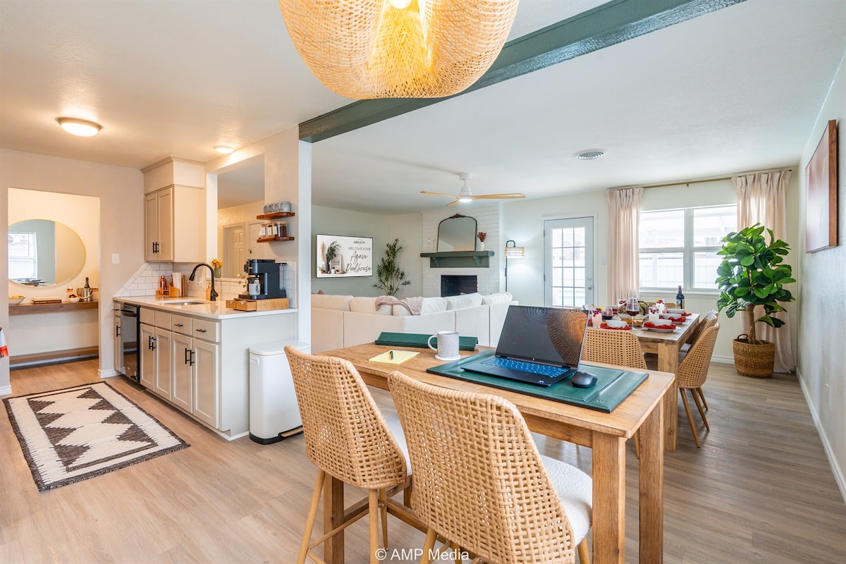 Is teach brící fairsing 2BR/2BA é Redbud Retreat ar shráid chiúin phríobháideach, agus is féidir siúl go Páirc Redbud. Agus 1,400+ troigh chearnach ann, tá príomh-svuít rí, an dara seomra folctha iomlán, Wi-Fi tapa, teilifís chliste 55”, cistin lánfheistithe, spás bia/oibre, agus dhá phaitió phríobháideacha ann chun do scíth a ligean. Suite in aice le Buffalo Gap Rd in aice le Hendrick Medical Center South, turas tapa chuig ACU, bialanna, agus siopadóireacht. Foirfe do lánúineacha, do theaghlaigh bheaga, nó do thaistealaithe gnó atá ag lorg fanacht compordach áisiúil in Abilene.