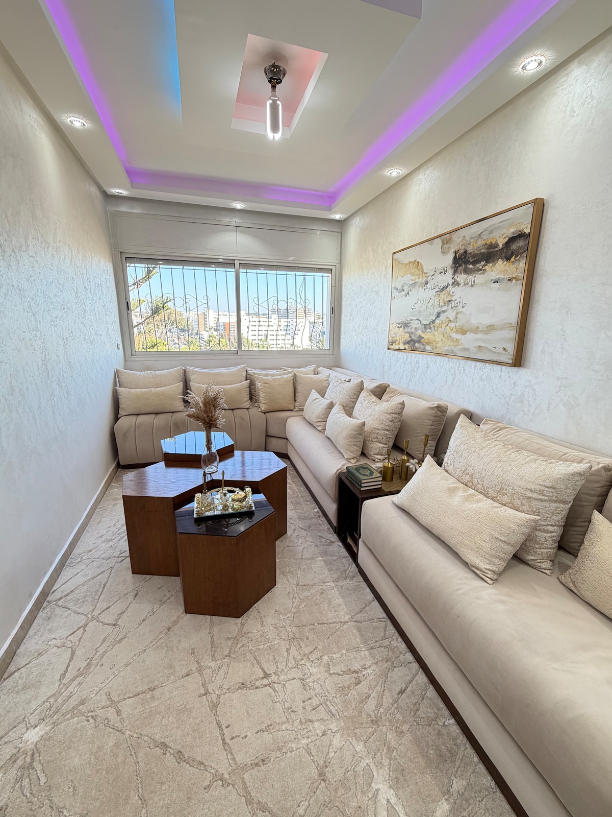 Árasán mór sómasach compordach i gcroílár Agdal, Rabat. Tá gach rud nua agus eagraithe go cúramach le haghaidh fanacht compordach. Suíomh iontach: Gar don tram, Starbucks, McDonald's agus caife Oliveri - tá na saoráidí go léir in aice láimhe. Foirfe d'aíonna atá ag lorg compoird, stíle agus gaireacht don lár. Tá Netflix saor in aisce, idirlíon ardluais thar a bheith tapa agus féinseiceáil isteach chun seiceáil isteach shimplí sholúbtha san áireamh. Tá cathaoir linbh agus cliabhán sa teach.