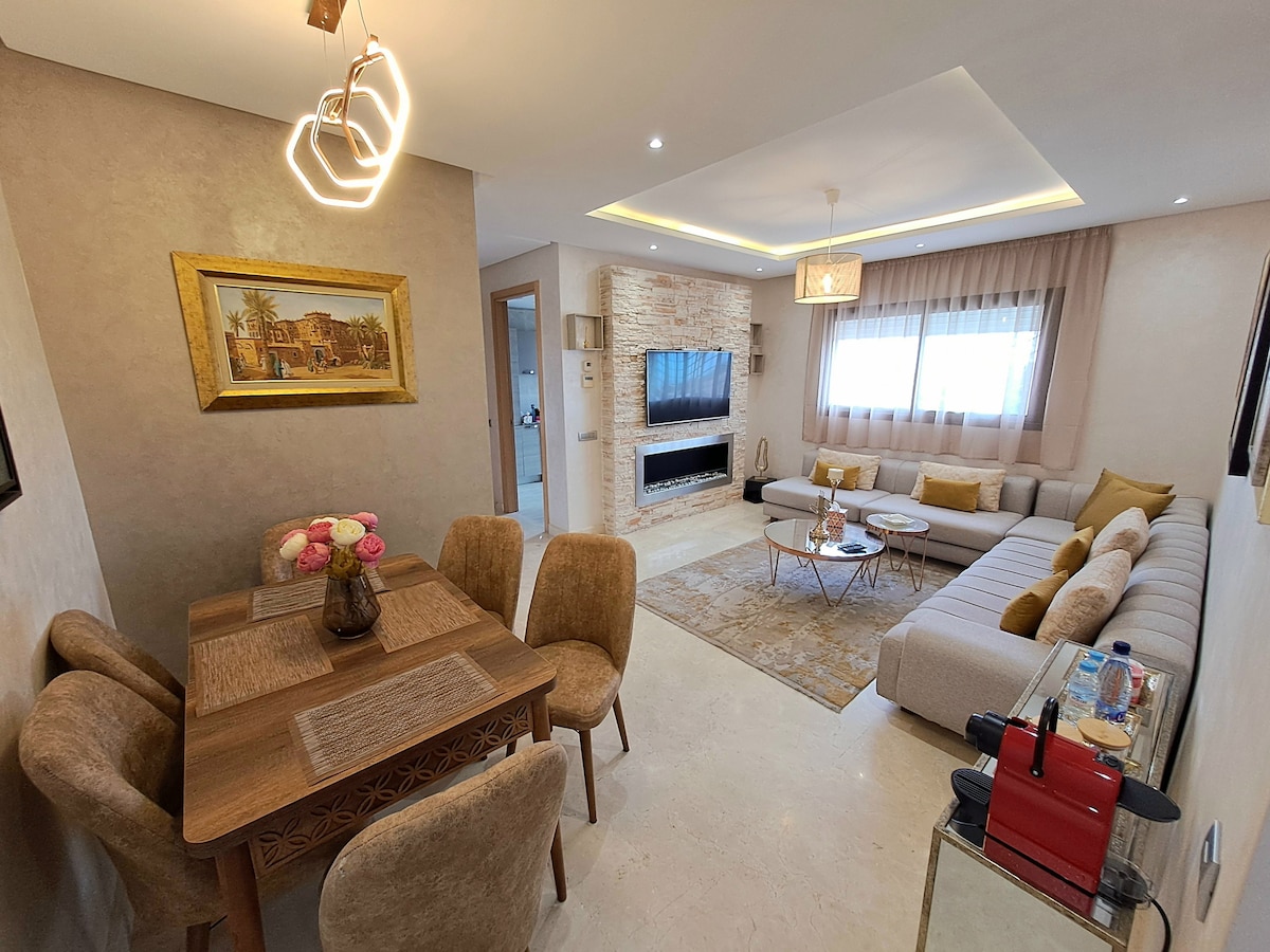 Millaigh tú féin le fanacht den scoth i gcroílár Agdal, gar do Staid Al Madina agus thart ar 8 nóiméad ar shiúl ón stáisiún TGV. Suíomh lárnach foirfe do CAN, agus is furasta taisteal go Rabat agus Casablanca. Árasán nua-aimseartha 45 m² ina bhfuil cistin feistithe, Teilifís Chliste agus Wi-Fi tapa. ❄️ Aerchóiriú inchúlaithe roghnach. 🌇 Rochtain ar an díon ag breathnú amach ar Rabat agus ar an Atlantach. 🛎️ Áit chónaithe shlán 24 uair sa lá. ✈️ Aistriú roghnach chuig an aerfort.