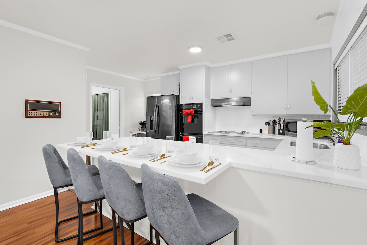 Fáilte go Tandy! Tá an teach gairdín gleoite seo suite go lárnach. Tá 2 sheomra leapa 2 sheomra folctha sa réadmhaoin seo. Tá Leaba Bhanríona le seomra leapa #1 agus folcadán iomlán suite díreach in aice leis. Tá ensuite le leaba Rí agus rochtain dhíreach ar an bpaitió lasmuigh sa seomra leapa #2. Tá tolg 55'teilifíseán cliste, plush sectional sa seomra suí a shuíonn go compordach 6. Óstálann an seomra bia 6 le cistin atá nuashonraithe go hiomlán le W/D. Tá cúlchlós iomlán fálaithe sa teach seo freisin. Aimsiú uathúil!