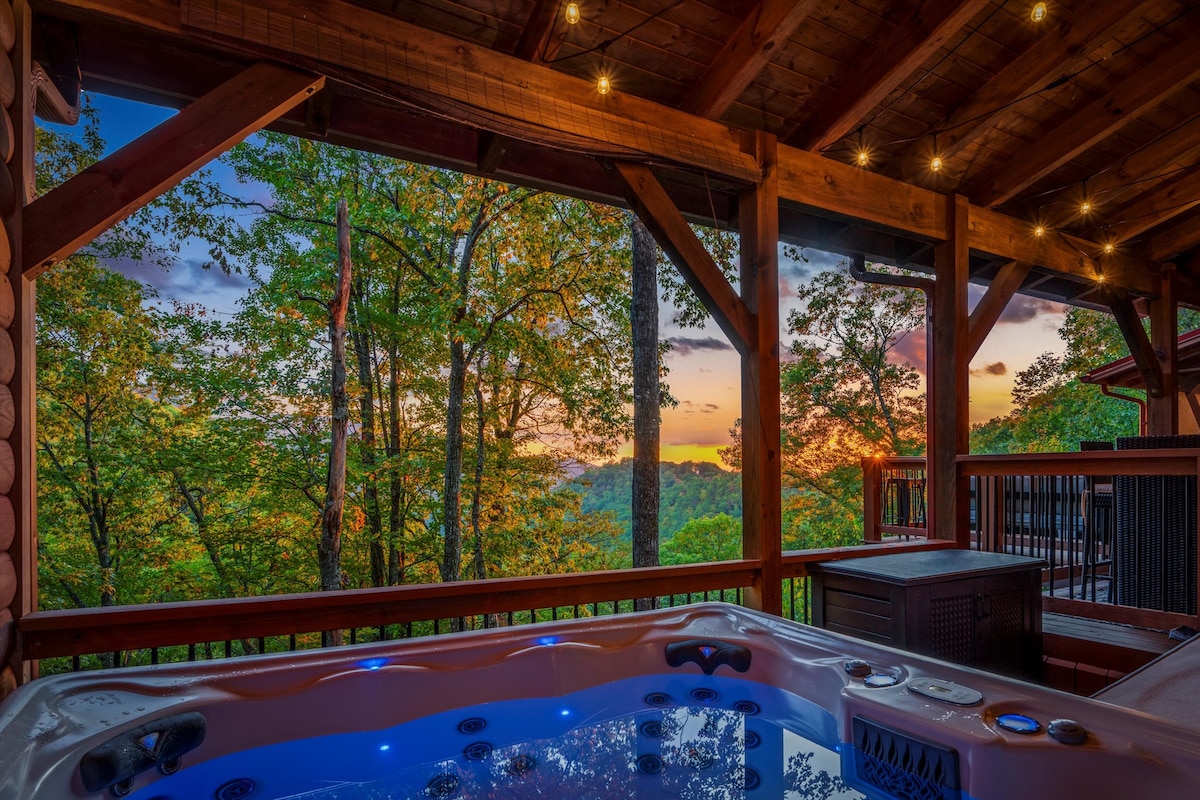 Ridgeview Retreat · ★5.0 ★ · 6 BR · 14 Beds · 5.5 Baths Mountain views, total privacy & nonstop fun! Unwind in the hot tub, sauna, or huge theater room. Play in the epic game rooms. Dine, grill & gather on large decks with room for 23. Spacious yet cozy with luxe touches throughout—perfect for family reunions or group getaways. Minutes to waterfalls, hiking, skiing, golf & more. Experience the perfect blend of relaxation, comfort, and adventure. Your unforgettable Smoky Mtn. getaway starts here.