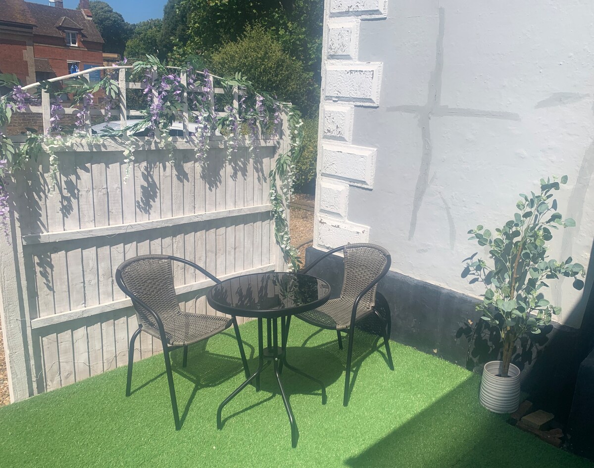 Is é Worthing an áit is grianmhaire sa Ríocht Aontaithe & níl an t - árasán seo suite ach cúpla nóiméad siúil ón trá. Páirceáil saor in aisce, maisiú galánta, suite go lárnach ach fós i bpóca suaimhneach den bhaile, tá radharc ag an árasán álainn seo ina bhfuil 2 sheomra leapa, atá dírithe ó dheas, ar ghairdín suaimhneach, a bhfuil pailmeacha ar imeall air (níl rochtain air). Athchóirithe le déanaí le sorn dóite adhmaid, WiFi Snáithín Optúil iomlán, línéadach leapa agus meaisín caife Nespresso. (Gan aon chóisirí móra. 'Liostú Ciúin' mar go bhfuil an t-árasán taobh istigh de theach. Tá fáilte roimh pháistí).