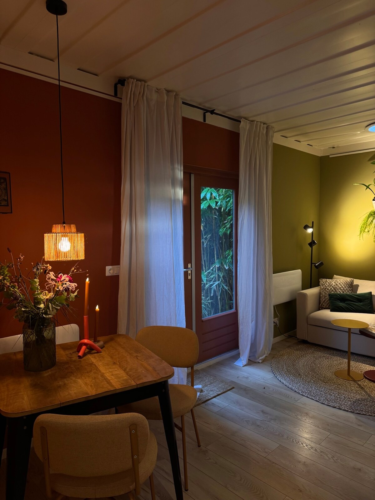 Fáilte go dtí ár dteach beag bídeach uathúil, curtha i leataobh i bhforaois phríobháideach ar imeall shráidbhaile gleoite na Freaslainne in Noordwolde. Tá an lóistín nua - aimseartha seo oiriúnach do lucht iarrtha na síochána agus do dhaoine a bhfuil dúil acu sa dúlra. I rith an tsamhraidh, bain sult as do ghairdín príobháideach fairsing ina bhfuil áit shuíocháin, vearanda agus ámóg i measc na gcrann. I rith an gheimhridh, is féidir leat suí go compordach taobh istigh den sorn adhmaid a théann an spás in am ar bith. Tá an teach beag bídeach dlúth ach feistithe leis na compord go léir!