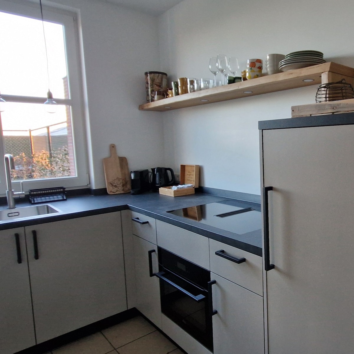 Centraal gelegen accommodatie is smaakvol ingericht. -All inclusive studio achter in de tuin. Marmer look tegels badkamer (douche, wc, wastafel, spiegel en wasmachine/ droger). Fõhn, strijkijzer en strijkplank. Ventilatie en rookmelder. -Sterk slaapbank die als een normaal bed slaapt. -Keuken met inductiekookplaat,vaatwasser,koelkast,vriezer,magnetron en Dulce Gusto apparaat. -Een eettafel met 2 stoelen. - Buiten kan je genieten van een tuin, een patio met een marmeren tafel en 4x tuinstoelen.