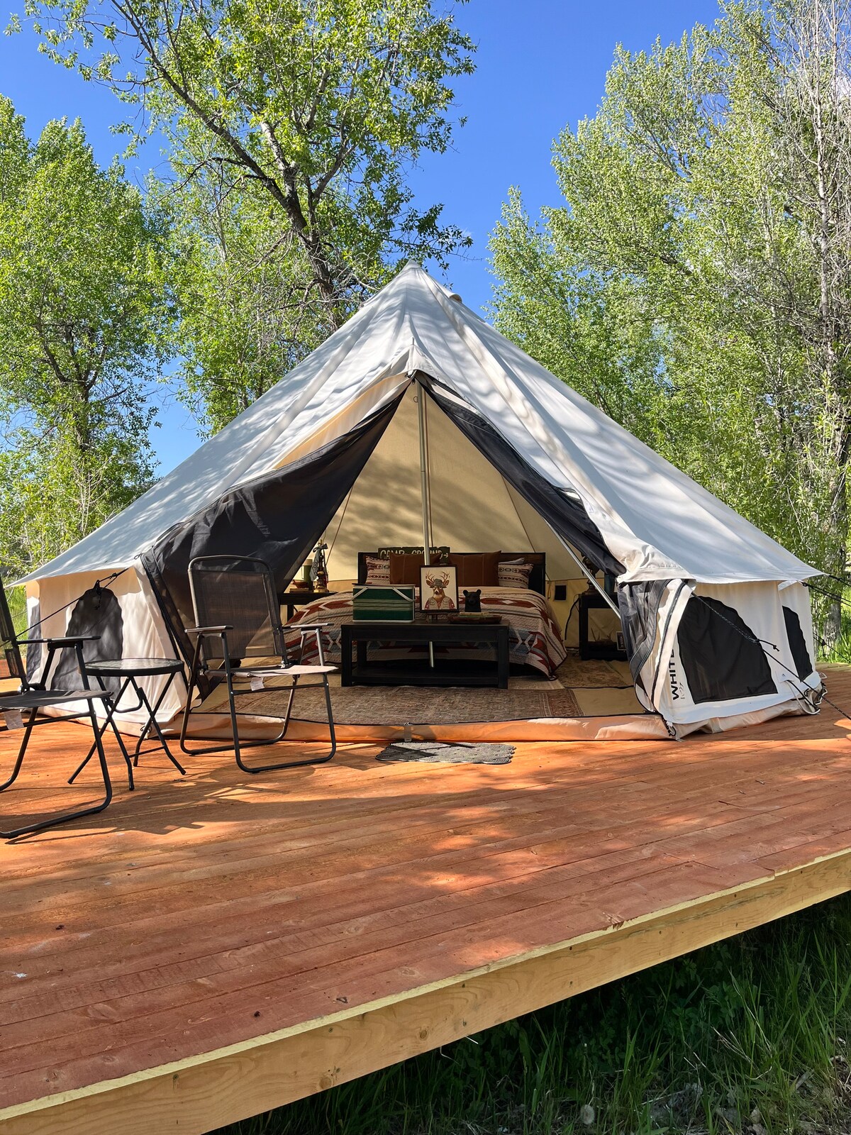 Neadaithe ar shiúl ag Craobh álainn, glan agus ciúin Mountain River in Ririe, Idaho níl sa phuball seo ach tiomáint ghearr ó shiúlóidí dúlra, ó fhoinsí teo agus ó Abhainn mhór na Nathrach. Tar agus taitneamh a bhaint as unforgettable a fháil amach sna sléibhte. Tógann an Seanphuball Glampála Dílis puball ag campáil go leibhéal iomlán nua! Is rogha iontach é do dhuine ar bith atá ag lorg deireadh seachtaine ciúin ar shiúl nó stad gearr ar a mbealach tríd an mbaile!