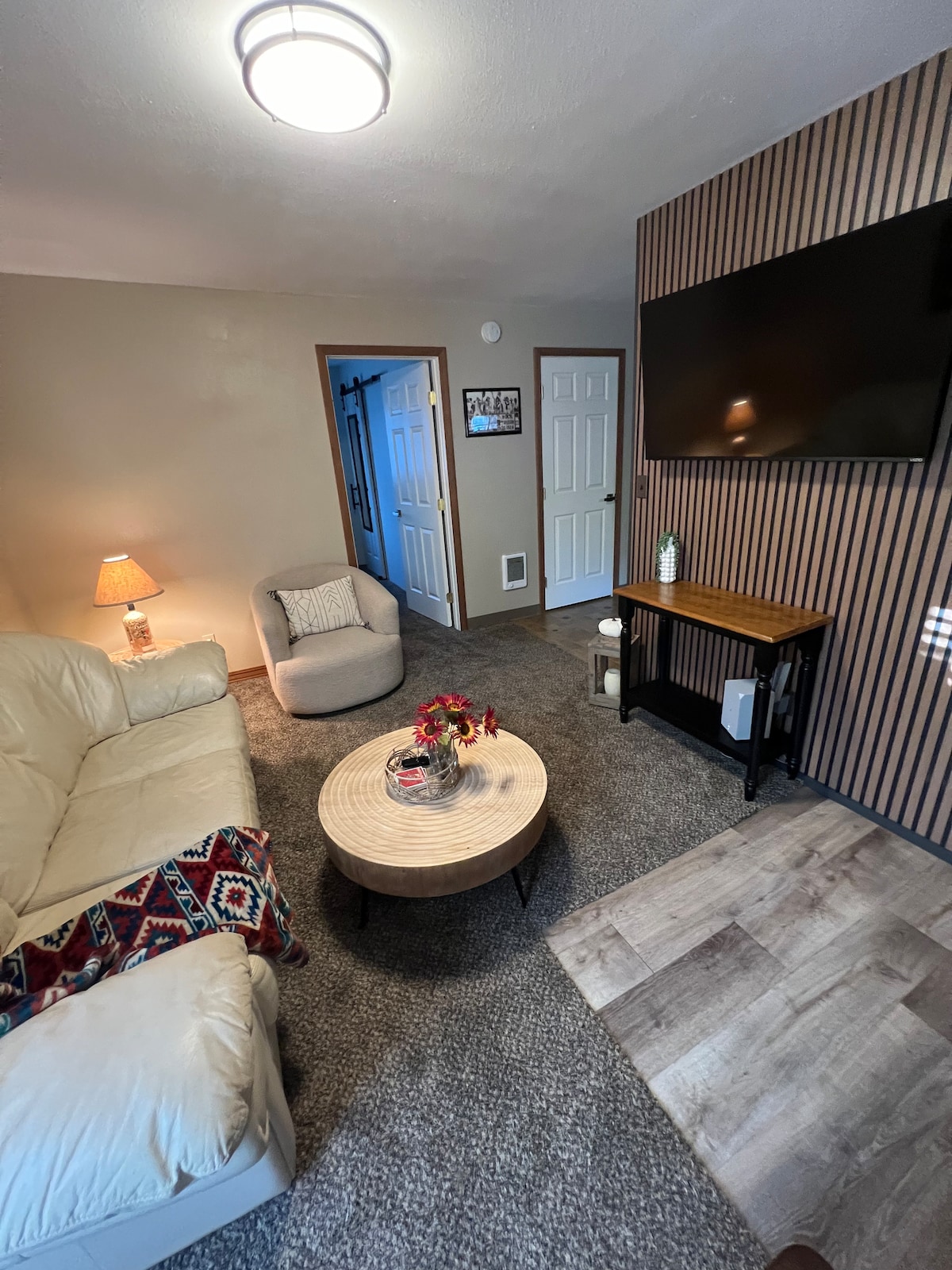 Saoire ghearr rómánsúil i gcroílár thír an fhíona! Téigh siar agus lig do scíth sa spás suaimhneach galánta seo - árasán aon seomra leapa atá feistithe go hálainn agus ina bhfuil leaba ar mhéid banríona agus dhá theilifíseán ar a bhfuil scáileán cothrom le Roku. I gcomharsanacht chiúin ina bhfuil páirceáil thiomnaithe in aice leis an mbealach isteach. Féinseiceáil isteach leis an gcód a seoladh ar an lá teachta. Áit phaitió phríobháideach ina bhfuil bord agus cathaoireacha. Is áit iontach é an spá beirte chun an radharc a scíth a ligean agus a ghlacadh. Luchtaire EV le húsáid saor in aisce. Fáilte roimh mhadraí beaga dea - iompartha.