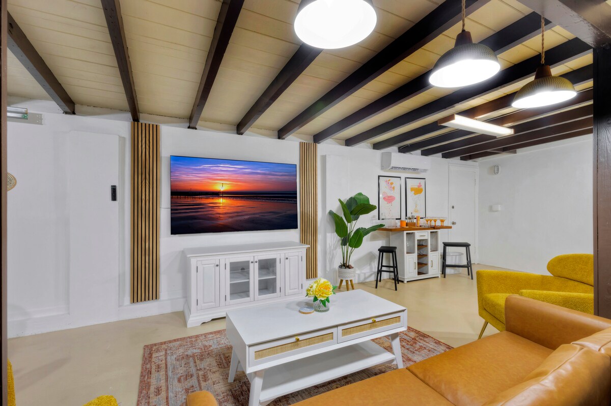 Villa Álainn ar Chlós Cois Trá; gan ach siúlóid ghearr go dtí an trá! Beidh tú ar do shuaimhneas láithreach agus tú ag dul isteach sa villa folctha 1 leaba nua - athchóirithe seo i gClub Aigéin & Racquet Iúpatair! Tá clós príobháideach ag ár villa fairsing ina bhfuil teallach, cathaoireacha agus binse lasmuigh faoi shoilse gealánacha. Má thaitníonn stíl mhaireachtála folláine níos nádúrtha leat, beidh tú buíoch as ár spás saor ó chumhráin + tocsain agus do riachtanais táirge go léir clúdaithe.