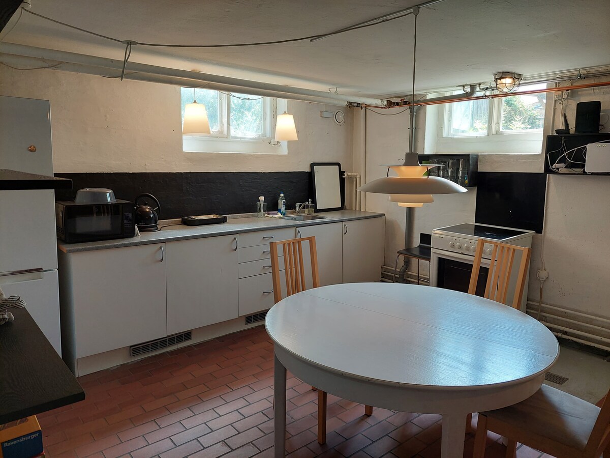Tá an t - árasán siúlóid 10 nóiméad ó stáisiún Hellerup agus tá bealach isteach ar leith ann. Tá sé thart ar 70 m2 agus tá 2 sheomra ann. Ceann ina bhfuil cistin chomhcheangailte, seomra bia agus seomra folctha, agus ceann ina bhfuil seomra leapa agus seomra suí le chéile. Tá leaba do bheirt agus leaba thoilg sa seomra. Ina theannta sin, tá leithreas beag ag an mbealach isteach.