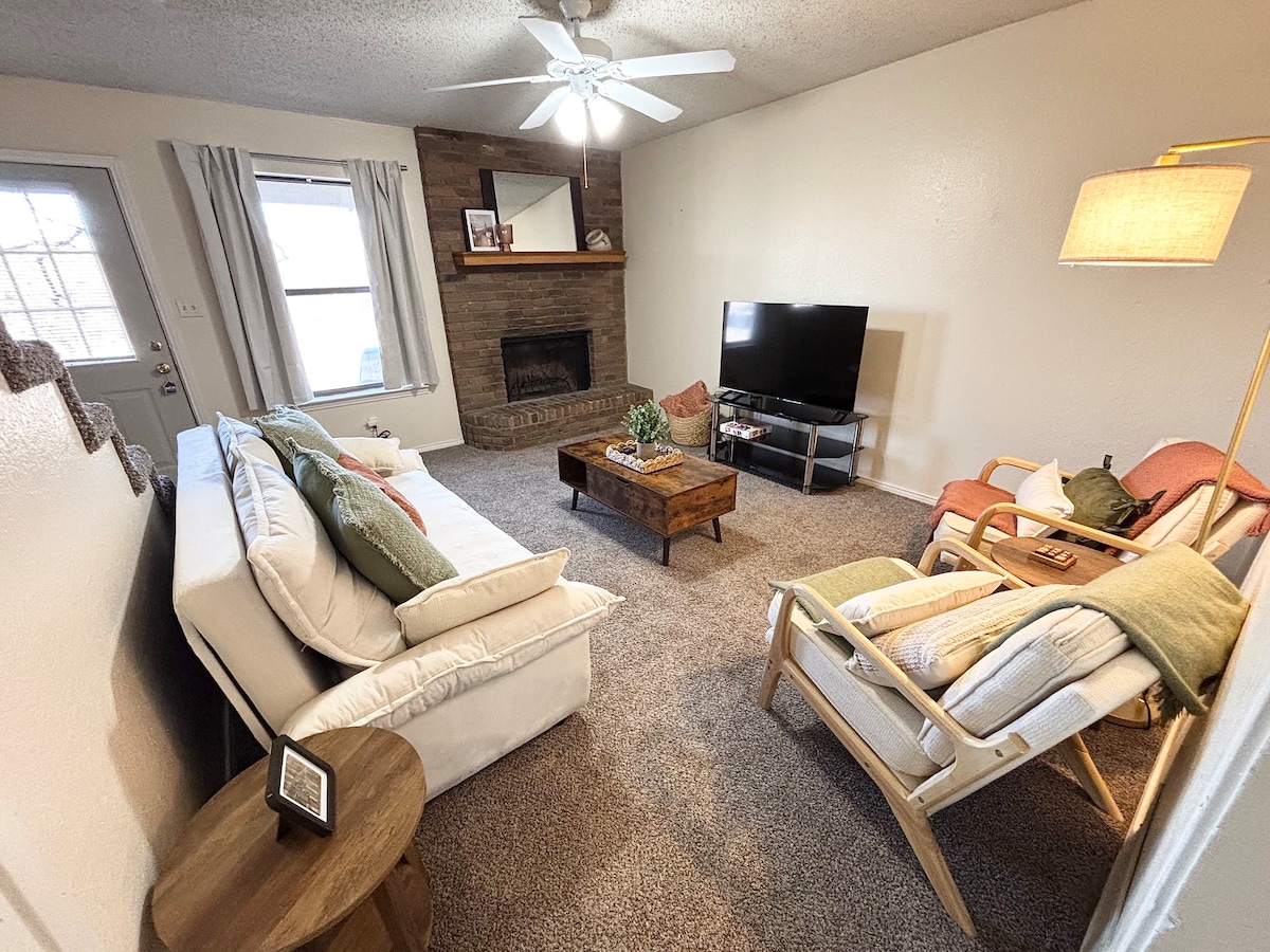 Beidh tú chomh gar do gach rud ag an teach gleoite seo díreach anseo i Downtown Mineral Wells, TX! Is é seo an chéad tsráid chónaithe amach ó lár an bhaile, ionas gur féidir leat siúl chuig gach rud: siopadóireacht, bialanna, Óstán Baker, Rickhouse Brewing, Óstán Uisce Crazy, cuideachta Uisce Crazy agus go leor eile. Coinníonn an teach iomlán seo a charachtar ó bheith tógtha céad bliain ó shin. Urláir chrua - adhmaid bhunaidh agus draíocht le 2 leaba rí, 2 sheomra folctha, 3 theilifíseán chliste, leaba lae, cistin iomlán, Wi - Fi, póirse agus neart spáis chun do scíth a ligean.