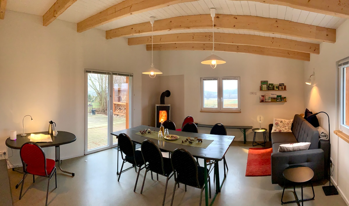 Teachín teolaí do bheirt. Go díreach ar an loch, le hardán mór agus sabhna. Tógadh an teach go heisiach le hábhair éiceolaíochta agus tá troscán soladach adhmaid ann. Tá leaba dhúbailte 160 x 200 ann, cistin lánfheistithe agus seomra folctha ina bhfuil cithfholcadán agus leithreas tirim. Tá an teach inrochtana go héasca ar an traein, níl stáisiún traenach Hämelerwald ach siúlóid 15 nóiméad.