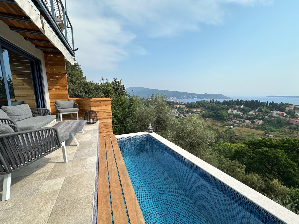 Dearadh an villa úrnua seo go cúramach ag tabhairt riachtanais agus só maireachtála nua - aimseartha le chéile. Suite ar Leithinis Lustica, tá radharc iontach gan bhriseadh ann ar Bhá Boka óna seomraí go léir. Osclaíonn cistin mhór phlean oscailte amach chuig an linn snámha agus chuig an áit itheacháin lasmuigh. Foirfe do chruinnithe ar laethanta teo an tsamhraidh. Níl sna tránna, sna bialanna agus sna beáir ach turas gearr cairr ar shiúl, rud a fhágann gur saoire fhoirfe é seo.