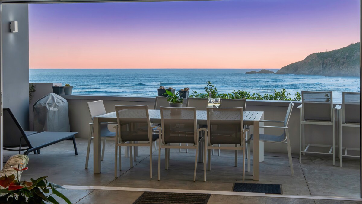 Ag breathnú amach ar an aigéan agus ar an murlach, atá neadaithe i gcoimeádacht éan i gcoinne cnoc foraoisithe agus 5 nóiméad sa charr ó thránna gan mhilleadh agus ó lár an Fhásaigh, cuireann an teach féinfhreastail galánta seo spásanna fairsinge maireachtála agus bia ar fáil, deic ina bhfuil linn snámha théite, 3 sheomra leapa ina bhfuil seomraí folctha en - suite agus ardáin phríobháideacha ina bhfuil radhairc ar an bhfarraige agus ar an bhforaois. I measc na saoráidí tá giomnáisiam baile, trealamh Pilates, Weber braai, teilifís chliste 75”, DSTV iomlán, Stáisiún Súgartha 4, bord fussball, agus Wi - Fi gan uasteorainn.