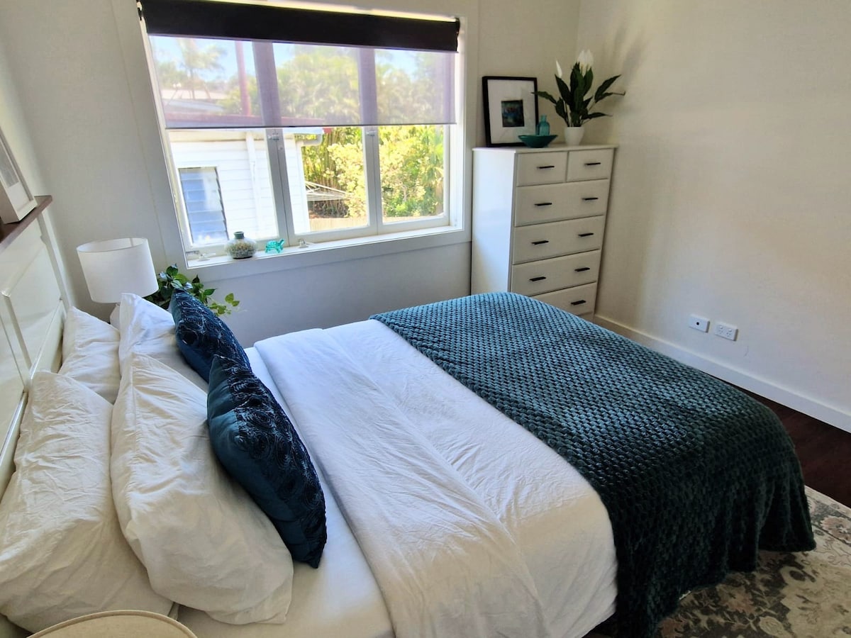 Le suíomh den scoth: Níl ach 10 nóiméad ar an CBD, le rochtain éasca ar bhusanna rialta, ar thraenacha, thar an gcathair, an t - aerfort san áireamh. Siúil go RBWH, James St, nó Fortitude Valley. Bain sult as áisiúlacht an stiúideo, ina bhfuil leaba bhanríona agus cistinéad ina bhfuil na bunriachtanais ar fad. Lig do scíth i do chlós príobháideach thar bhricfeasta síochánta nó bain leas as an linn snámha agus as an seomra aclaíochta chun scíth a ligean nó fanacht gníomhach le linn d'fhanachta.