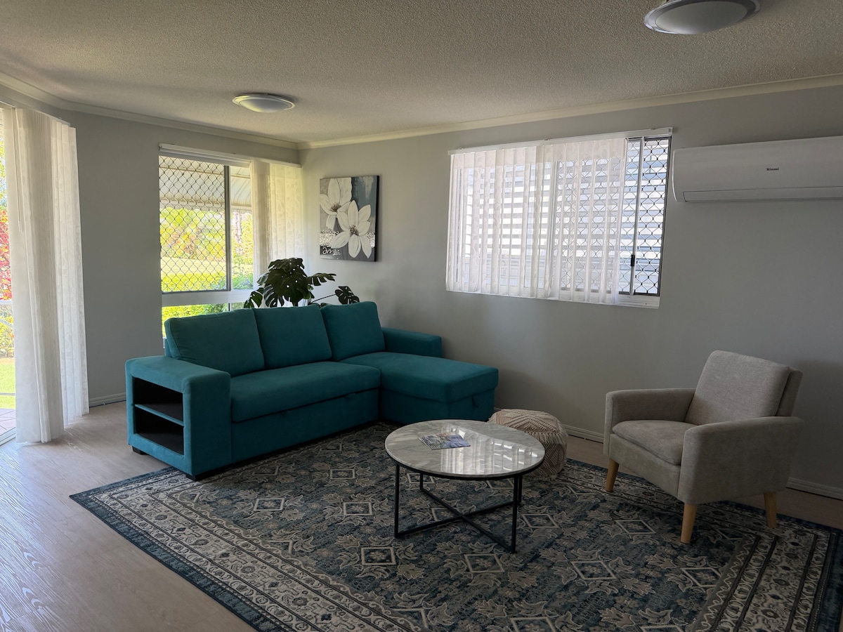 Is é teach iomlán cois trá - “Moananui” (focal Maoraigh na Nua - Shéalainne a chiallaíonn ‘an fharraige mhór ') an áit is fearr chun do scíth a ligean, athnuachan agus athnuachan a dhéanamh ag baile suaimhneach Toogoom, 15 nóiméad ó Bhá Hervey. Níl an teach gleoite brící agus tíleanna 3 sheomra leapa ach cúpla céim ar shiúl ón trá. Tá sé foirfe do theaghlaigh nó do lánúineacha a bhfuil scíth a ligean de dhíth orthu. Tá an trá sábháilte do leanaí agus tá sé oiriúnach le haghaidh siúlóide, snámha, cadhcála nó seaschéaslóireachta. Cuir do theach cois trá in áirithe chun do scíth a ligean agus do scíth a ligean!