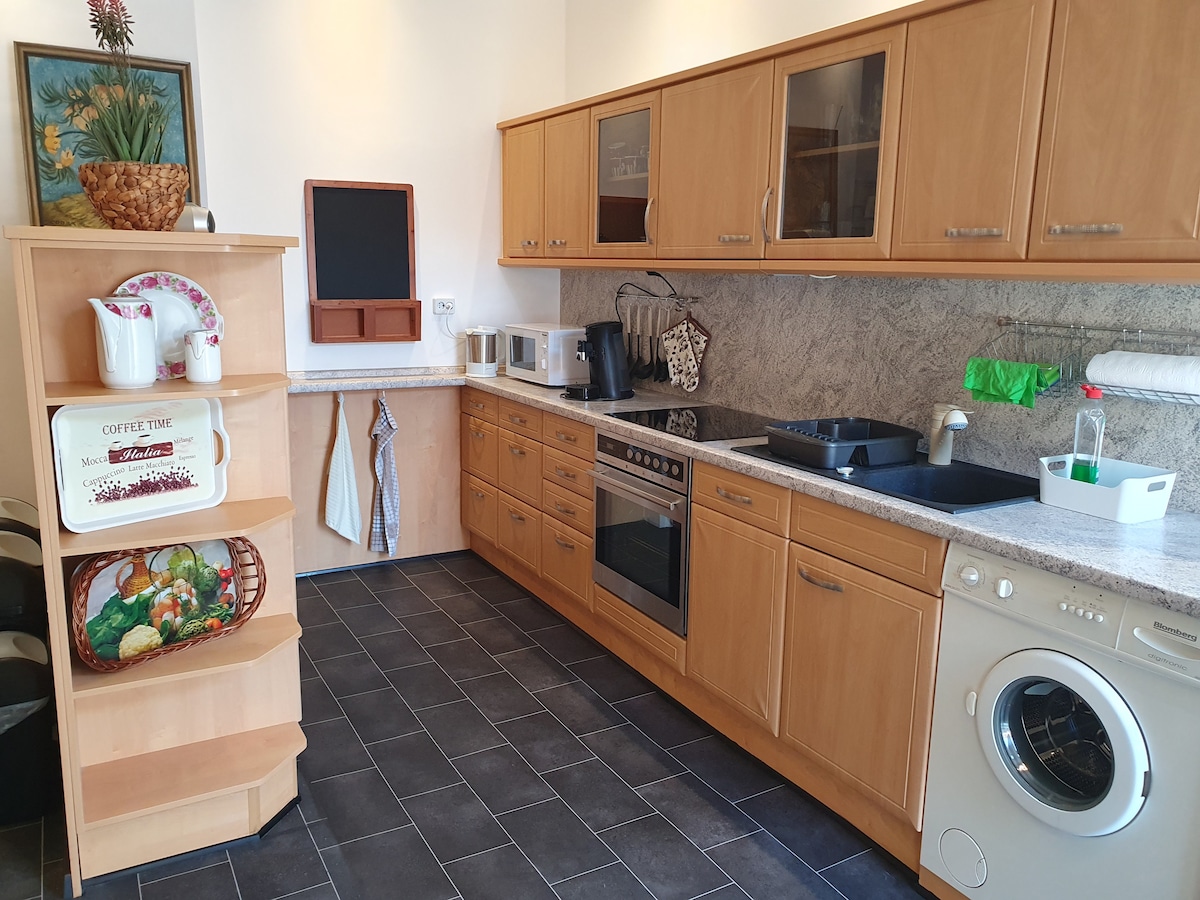 Cuireann ár dteach gach rud atá uait ar fáil le haghaidh fanacht deas in Dresden. I lár an cheantair fhaiseanta, tá teach álainn le huaillmhian tuaithe ag fanacht leat. Is féidir leat a bheith ag súil le bua nua - aimseartha le haird mhór ar mhionsonraí. Tá an teach an - mhór agus feistithe go hiomlán. Tá an suíomh ciúin, ach díreach in aice leis an gceantar faiseanta Dresdner Neustadt. Tá an teach iomlán agus an gairdín acu inar féidir leat do scíth a ligean. Níl sé oiriúnach do pháistí. Heike & Micha