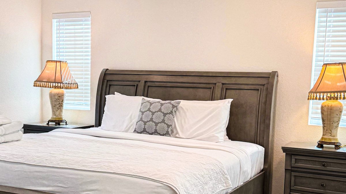 Gorgeous 3 bed/2 bath single floor home with PRIVATE POOL that feels like a 5 Star resort with FREE EV charging for your car. Beautiful backyard, BBQ grill and 12 seater lounge, pool & hot tub with water slide. Fireplace, 85” LED TV, work space, High speed Wi-Fi , treadmill. Fully equipped kitchen, 6-burner gas range stove, rice cooker, coffeemaker etc. Laundry room with washer/dryer, iron/board, air conditioning, heating, linens/towels, Pack & play. Digital door lock, Driveway for 4 vehicles.