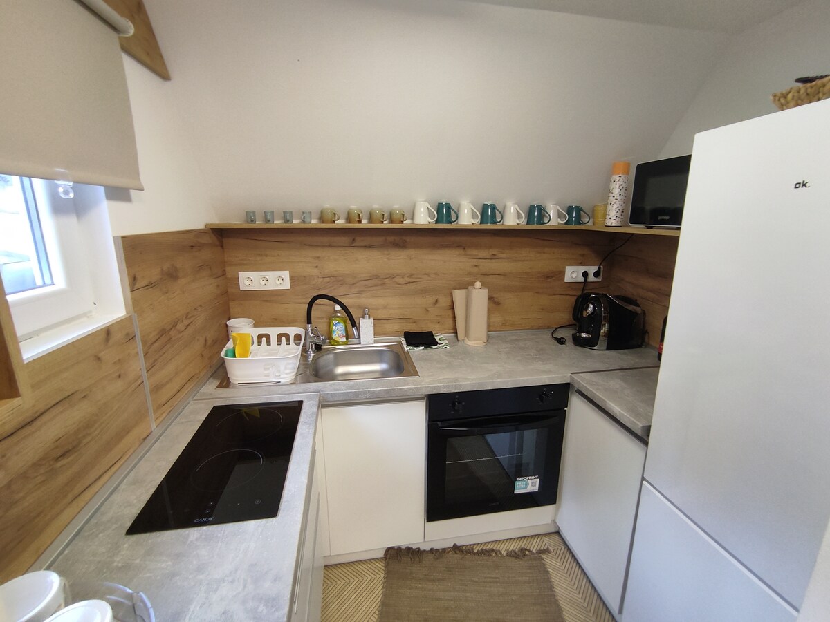 Ní cábán galánta é an t - árasán Gorm do bheirt ag teach éiceabhách Ribizli, ach teach beag bídeach ag mothú i dteach síscéal 100 bliain d'aois! Tar, lig do scíth i do chompord iomlán, splancáil sa tobán te préimhe ar ardán an tí aíochta, gríoscán sa ghairdín álainn. Mothaigh an t - atmaisféar croíúil, rómánsúil ar an drong agus ar an ardán. Is ioraí ráthaithe, gráinneoga agus cíoradh éan iad ár n - aíonna gairdín freisin. Árasán féinchuimsitheach ina bhfuil bealach isteach príobháideach ina bhfuil cistin phríobháideach agus seomra folctha ina bhfuil cithfholcadán spréiteora.