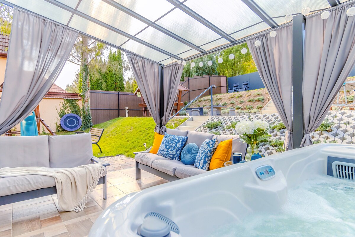 Déan iniúchadh ar chomhchuibheas an tsuaimhnis agus an chompoird inár dteachín teolaí faoin tuath in Mátra! Má tá tú ag lorg sos ina dtagann an dúlra agus an compord le chéile, is é seo an áit le bheith. Éalaigh ón ngnáthrud agus bí ar do shuaimhneas i ndraíocht na Mataí! Caith cúpla lá in ósais shuaimhneach le bord pictiúrlainne, tobán adhmaid le jacuzzi, agus bricfeasta buifé. Faigh blaiseadh den eispéireas speisialta lóistín seo agus cruthaigh cuimhní cinn dodhearmadta i nglacadh leis an dúlra!