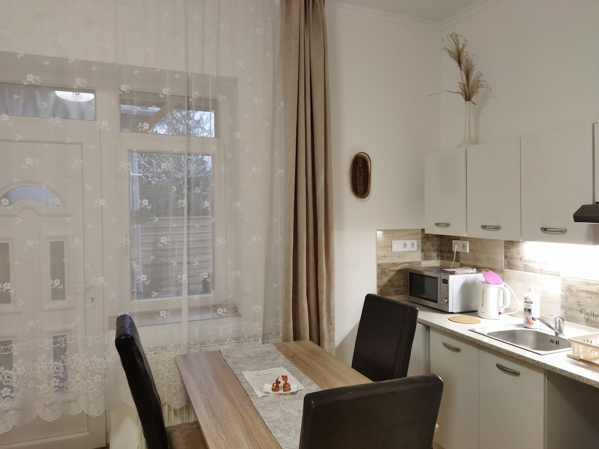 Our renovated, ground-floor 32 m2 apartment awaits its guests 700 meters from the lake, in a peaceful area. Restaurants and shops are located about 400 meters away. The studioapartment has a well-equipped kitchen and a bathroom with a shower cabin. Privat parking for free. Our apartment can accommodate 2+2 people. Thanks to the northern location of the apartment, it is pleasantly cool in the summer and warm in the winter with central heating. Tourist tax HUF 830/pers/night payable on the spot