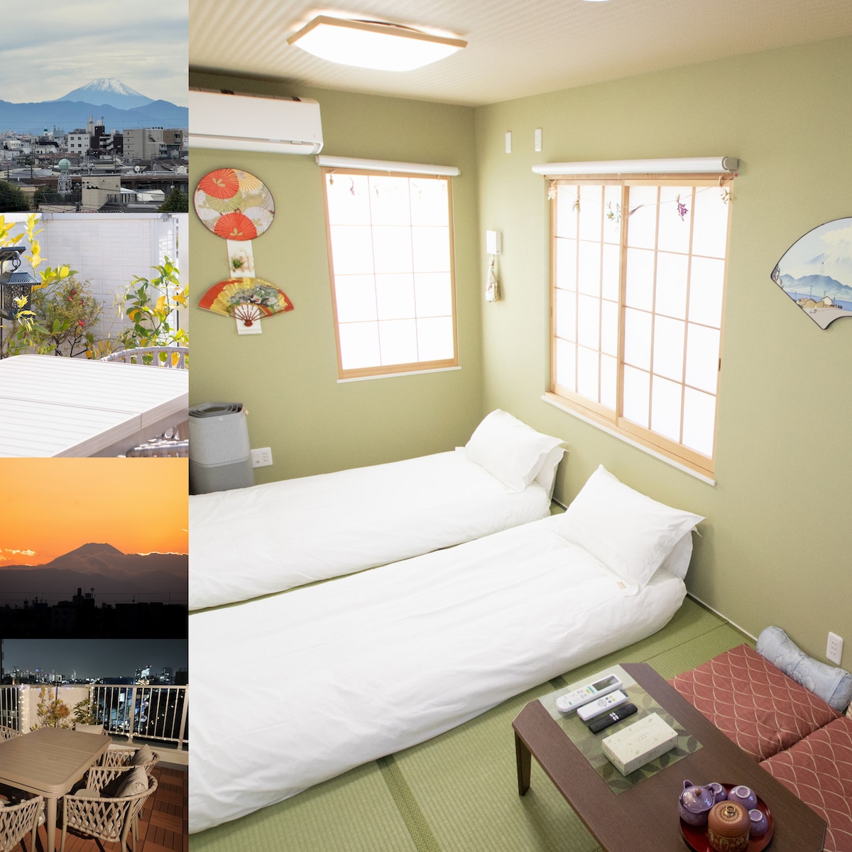 2340inn: Limistéar Tráchtála Ikebukuro, 4 nóiméad ar fobhealach, Mt. Fuji le feiceáil ar an díon, deartha go hiontach 55 ㎡, tatami Seapánach + seomra suí, 2 sheomra folctha