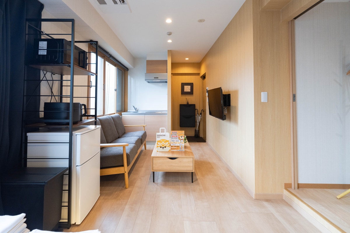 Located in the heart of Osaka, in the Chuo Ward. You can easily walk to popular destinations like Shinsaibashi, Dotonbori, Namba, and Kuromon Market. The room has a private kitchen and bathroom in the living area. Free WiFi and bicycles are provided for guest use. It's an 8-minute walk to the nearest metro station. 【 Attention】Our room rates are based on occupancy. Please confirm the number of guests in your reservation so we can adjust the room fee accordingly. Thank you.
